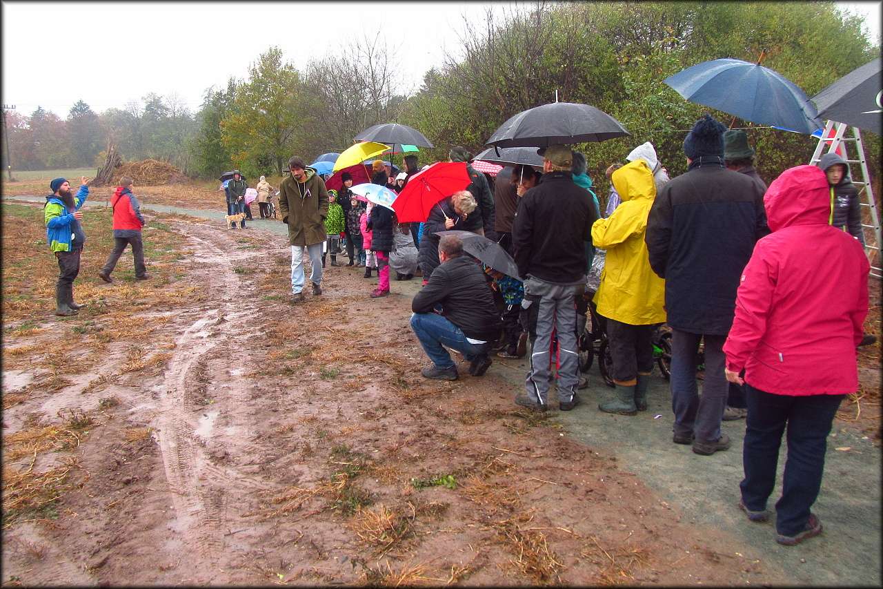 Po dlouhém období sucha celá slavnostní akce propršela. I přes nepřízeň počasí se sešlo poměrně mnoho nadšených lidí. Pan David Stojan pronesl slavnostní řeč, ve které se zmínil též o vznikající naučné stezce. S panem starostou Tuzarem pak uložili do schránky v základech kapličky podkovu pro štěstí. Tu příští rok, při výstavbě kapličky, nahradí schránka se vzkazem budoucím generacím.