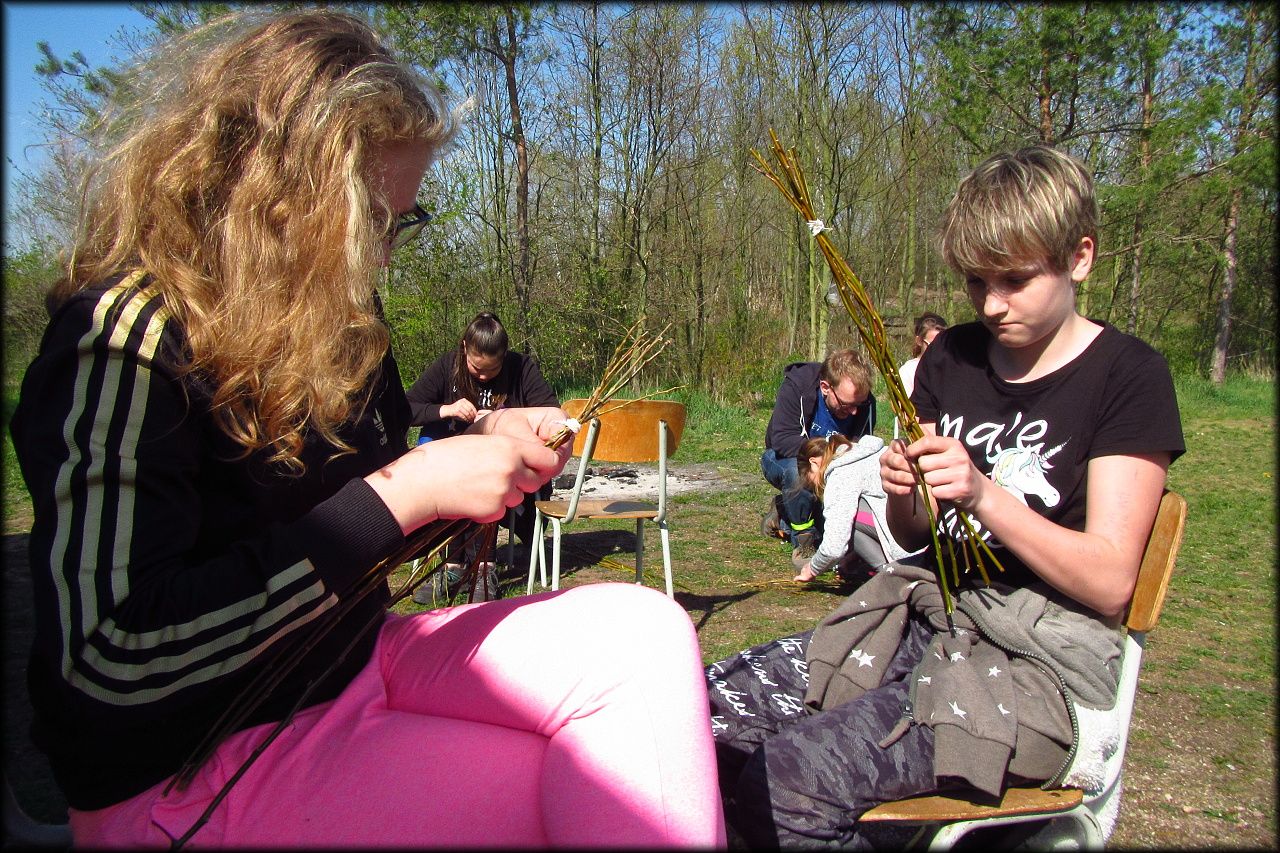 Nejprve nás čekal téměr nadlidský úkol sehnat pár stejně dlouhých a stejně silných proutků! Pak jsme již nechali pracovat naše hbité prsty a pletli jsme pomlázky. Klasiku, z osmi, horní mezi protější dva a zpět dospod.
