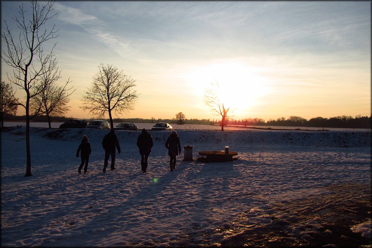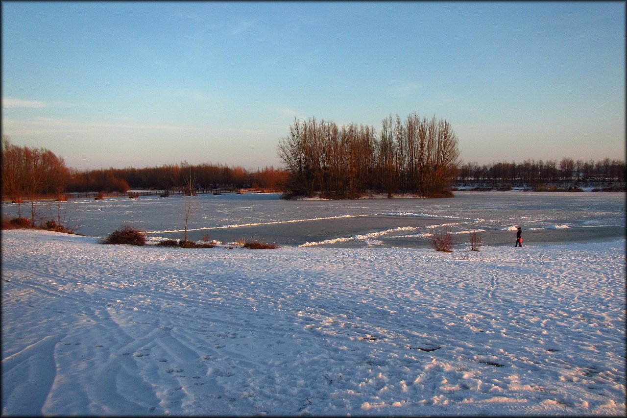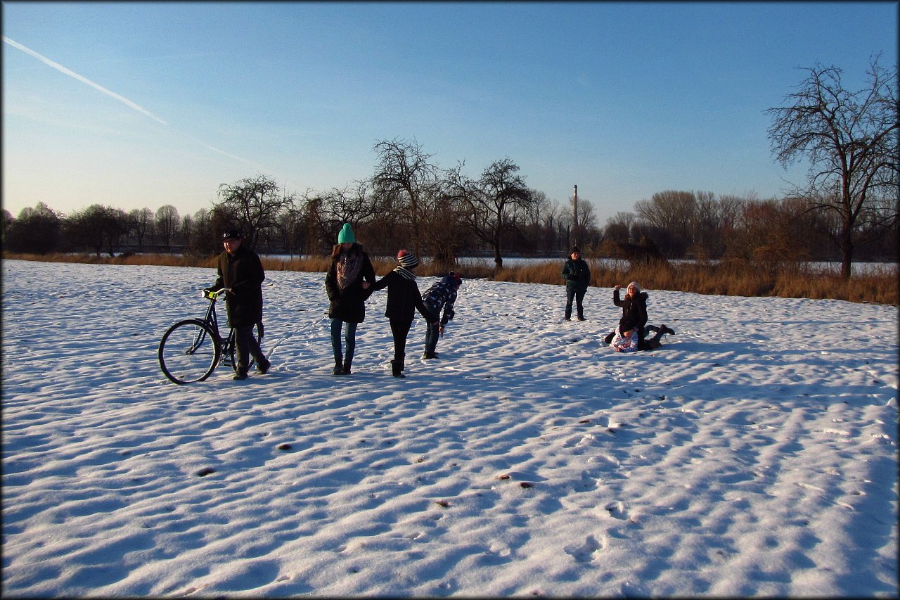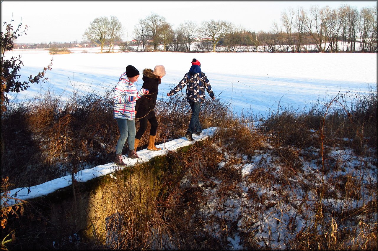 Dnes jsme se sem však vypravili v zimním období s vrstvičkou sněhu. Nejprve jsme se porozhlédli pod jezem po vodním ptactvu. Krom jednoho křížence domácí a divoké kachny tu nic zvláštního nebylo. Jen velké hejno kachen divokých a pár labutí velkých.