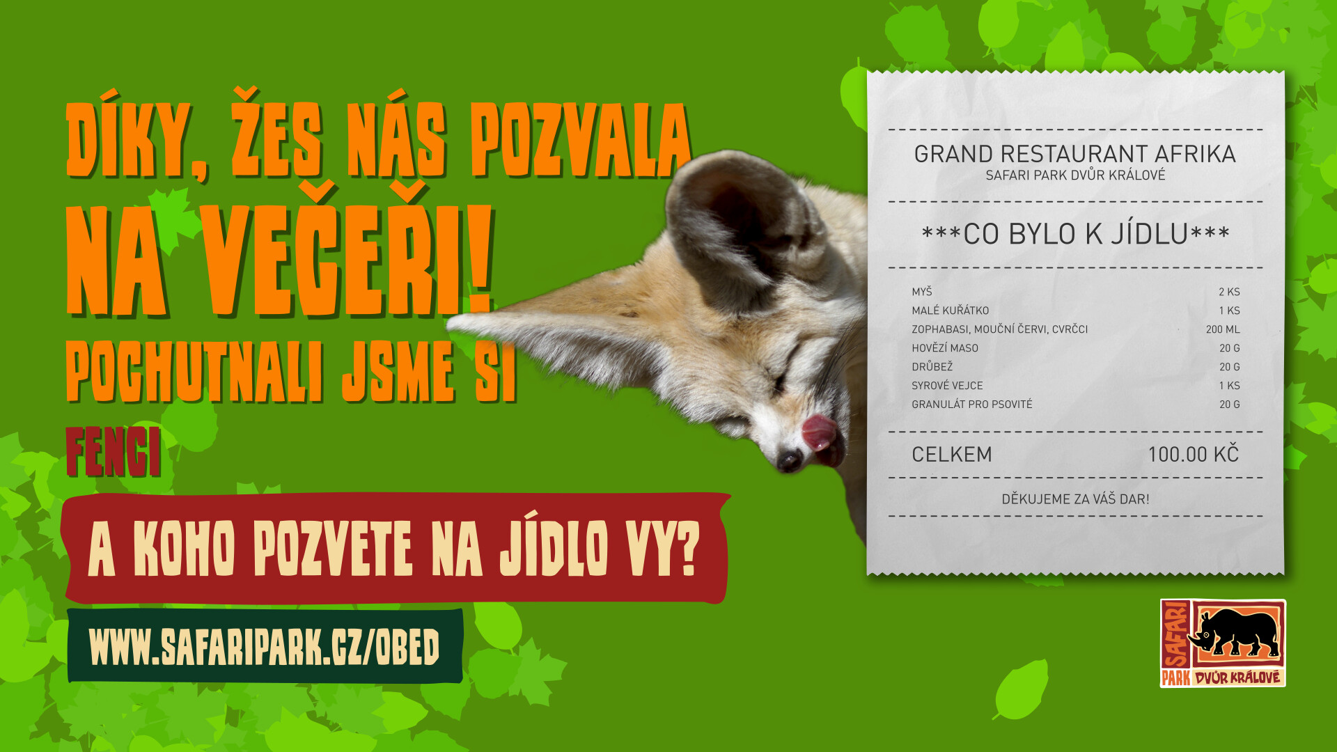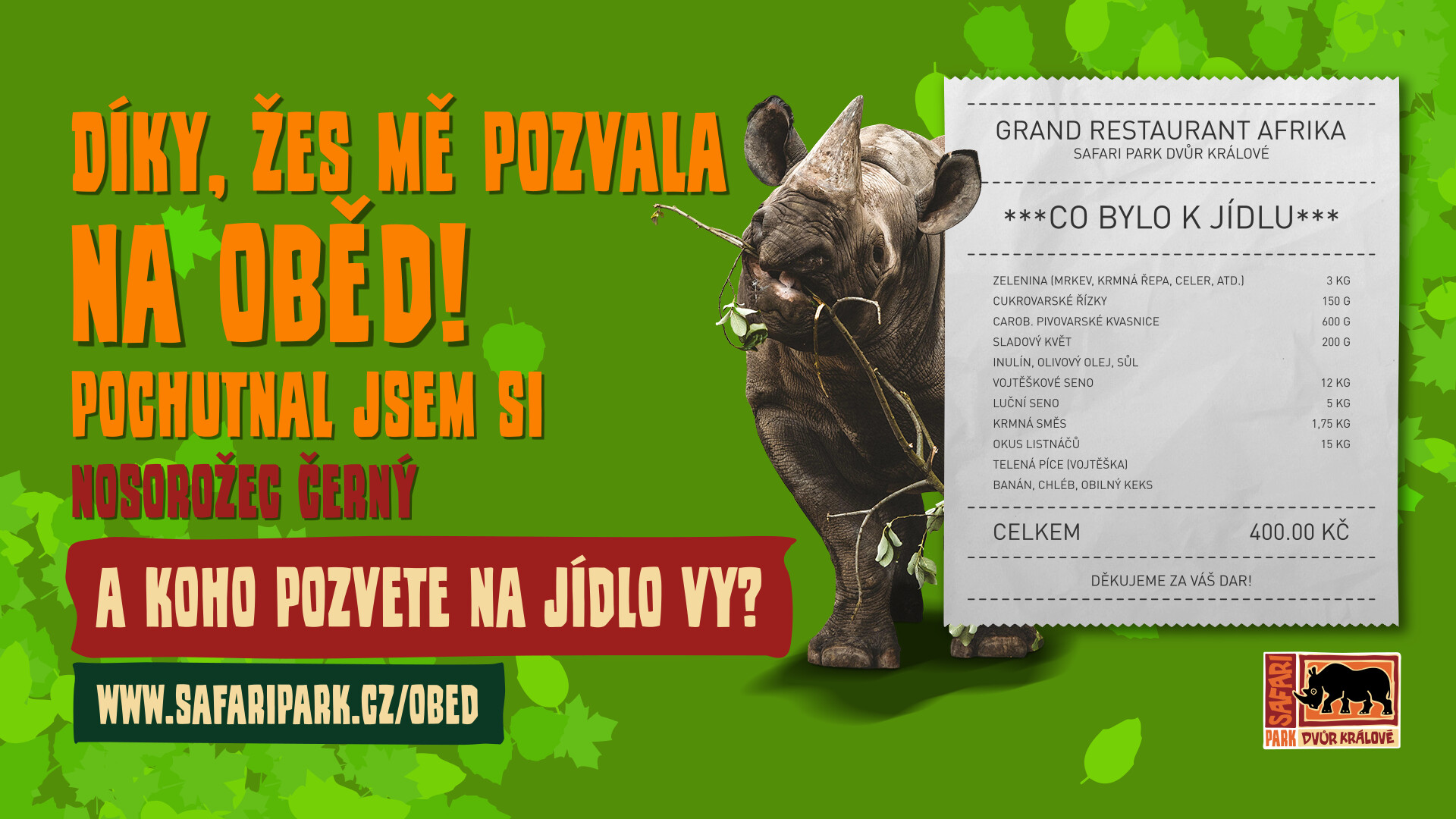Proto můžete symbolicky pozvat vybrané zvíře na oběd a přispět tím na péči o svěřence ZOO Dvůr Králové, která je nám nejblíže.