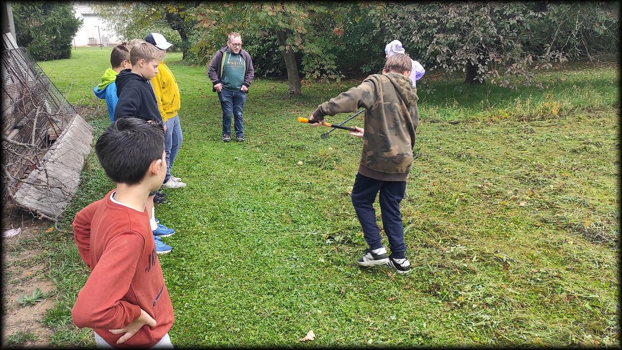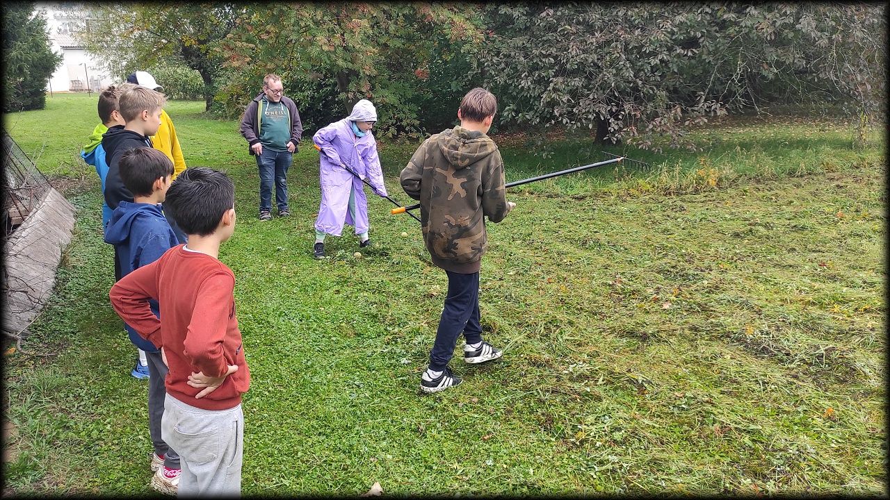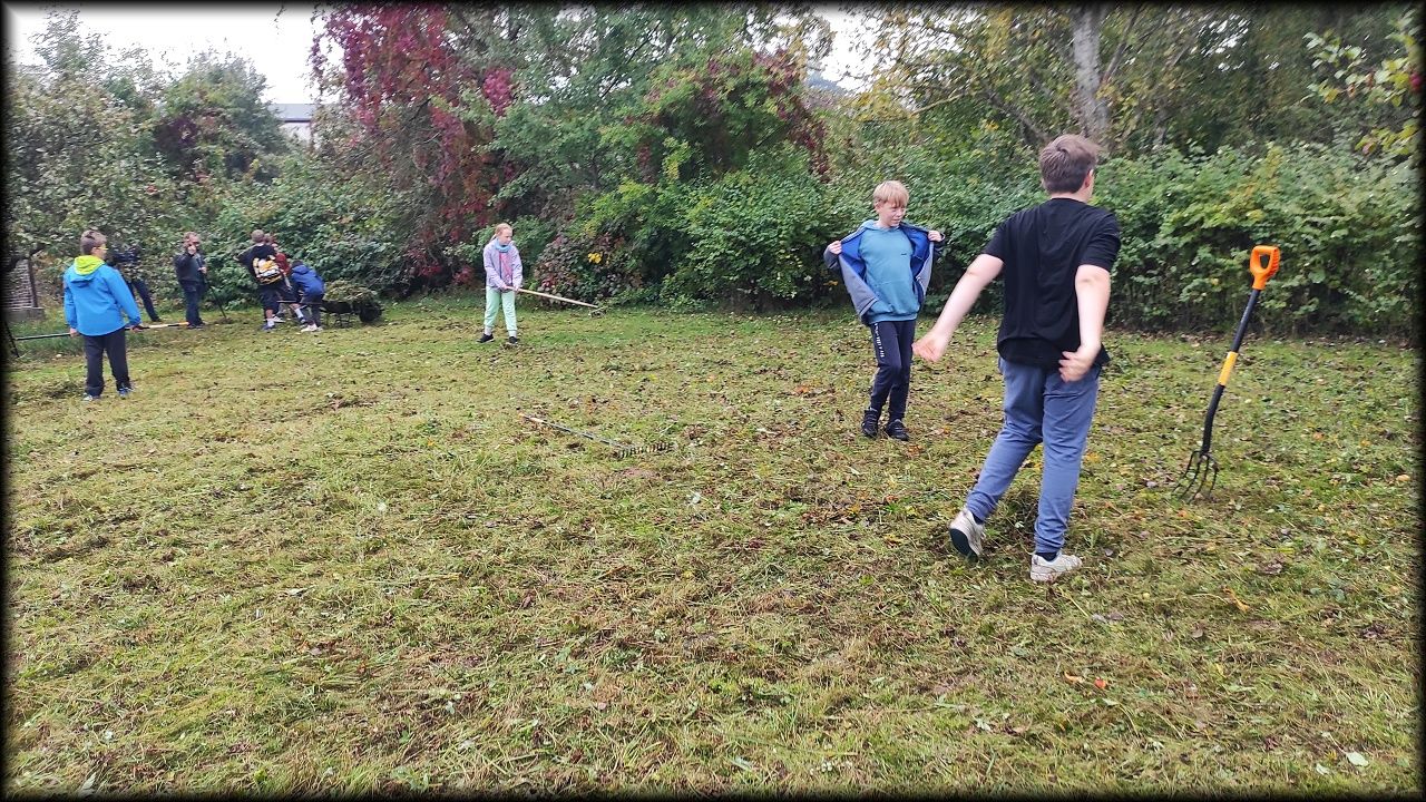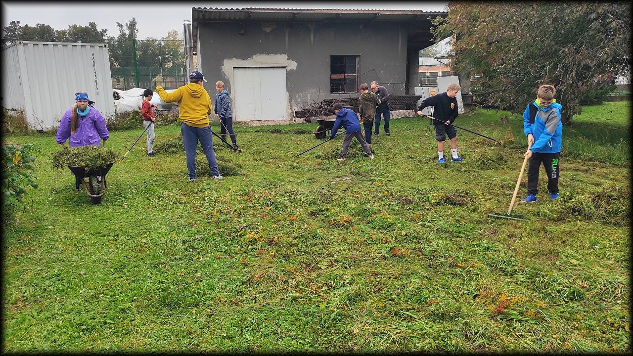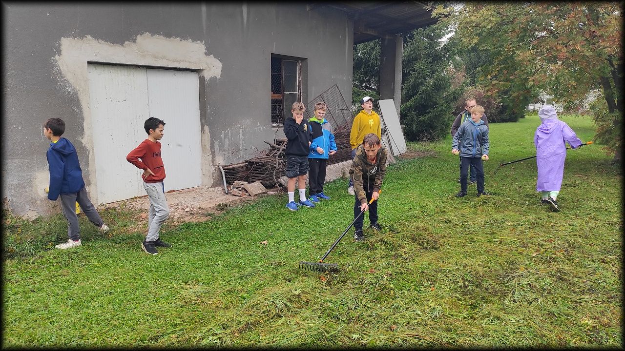 Pan školník položil trávu na loukách, tak jsme ji šli uklidit.