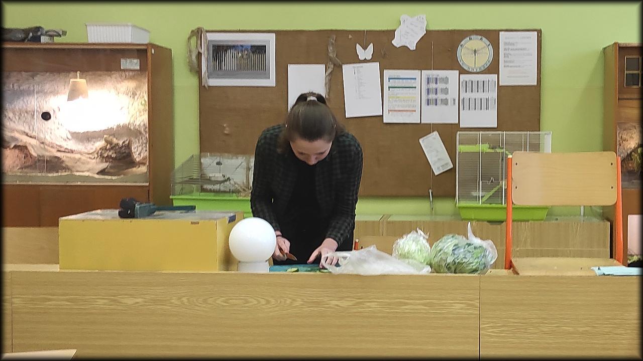 Šli jsme rovnou na věc, protože nás čekala delší piplavá práce, která prověřila nejen naši zručnost, ale také trpělivost. A Sabča byla dnes nejrychlejší. To se hold poznají ženské ruce! Tak ve zbývajícím čase ochotně vyčistila myším terárko. My ostatní tímto děkujeme!
