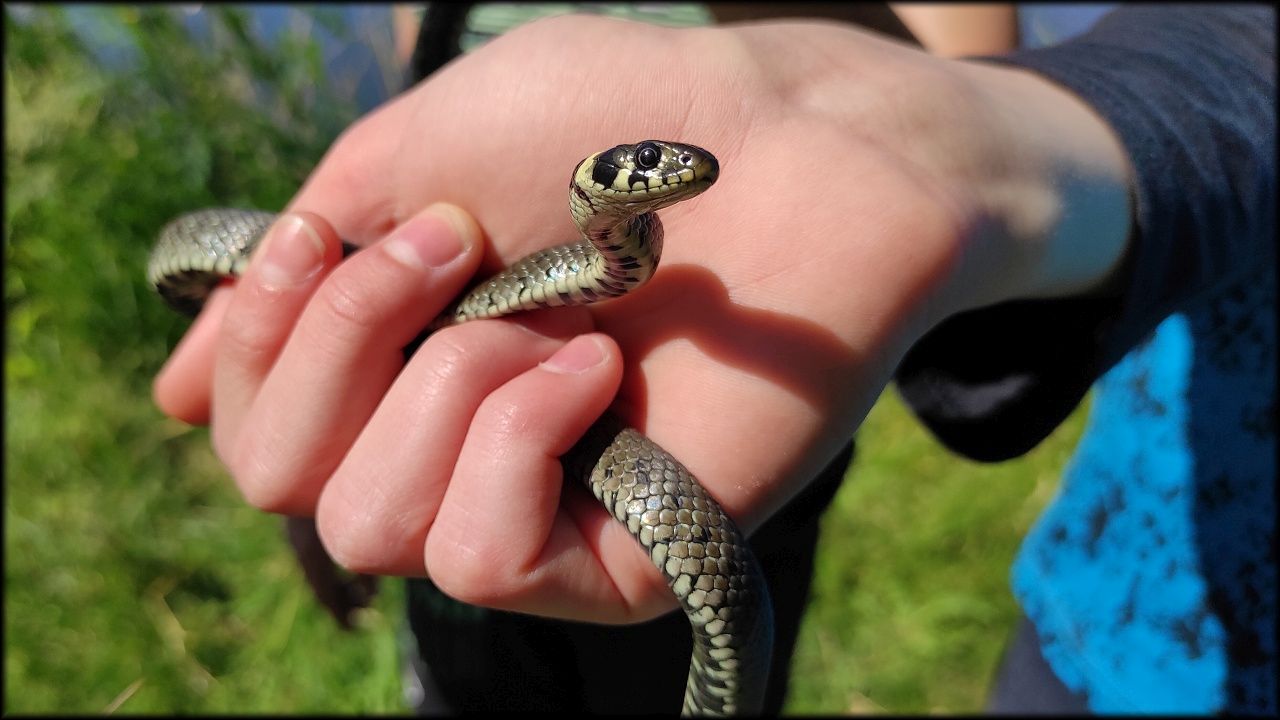 Opět jsme využili ubytování na ZŠ Lázně Bohdaneč, za které děkujeme! Místní rybníky nás tentokrát odměnily podívanou na pět orlů a jednadvacet jeřábů, spoustu dalších ptáků, užovky, kuňky, ale také vstavače, ... Narazili jsme dokonce i na želvu nádhernou (ZDE), která se vůbec nebála (ZDE). Několik živočichů jsme si i odchytili, abychom si je prohlédli zblízka. Všechny jsme ve zdraví vypustili zpět. Jako tuto užovku - ZDE.