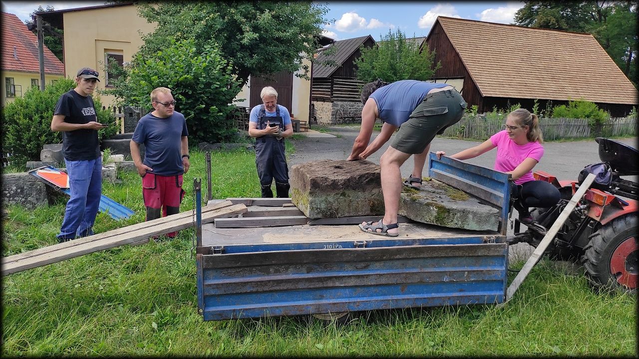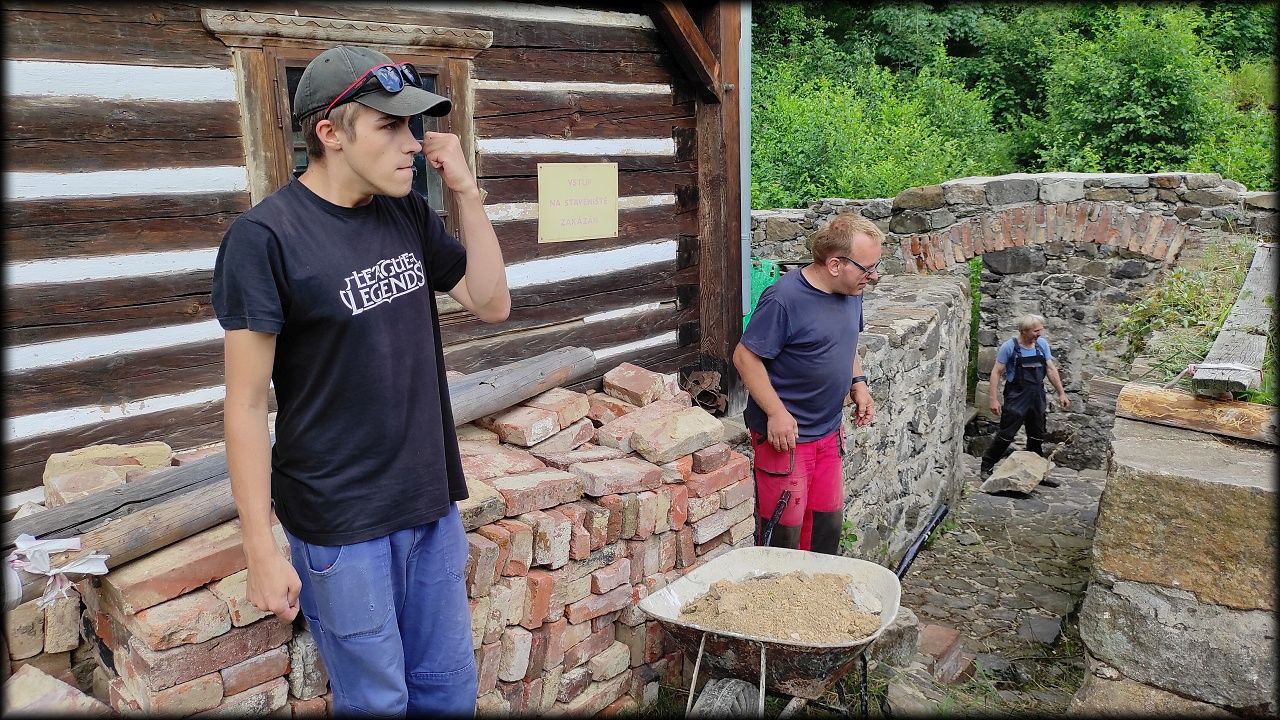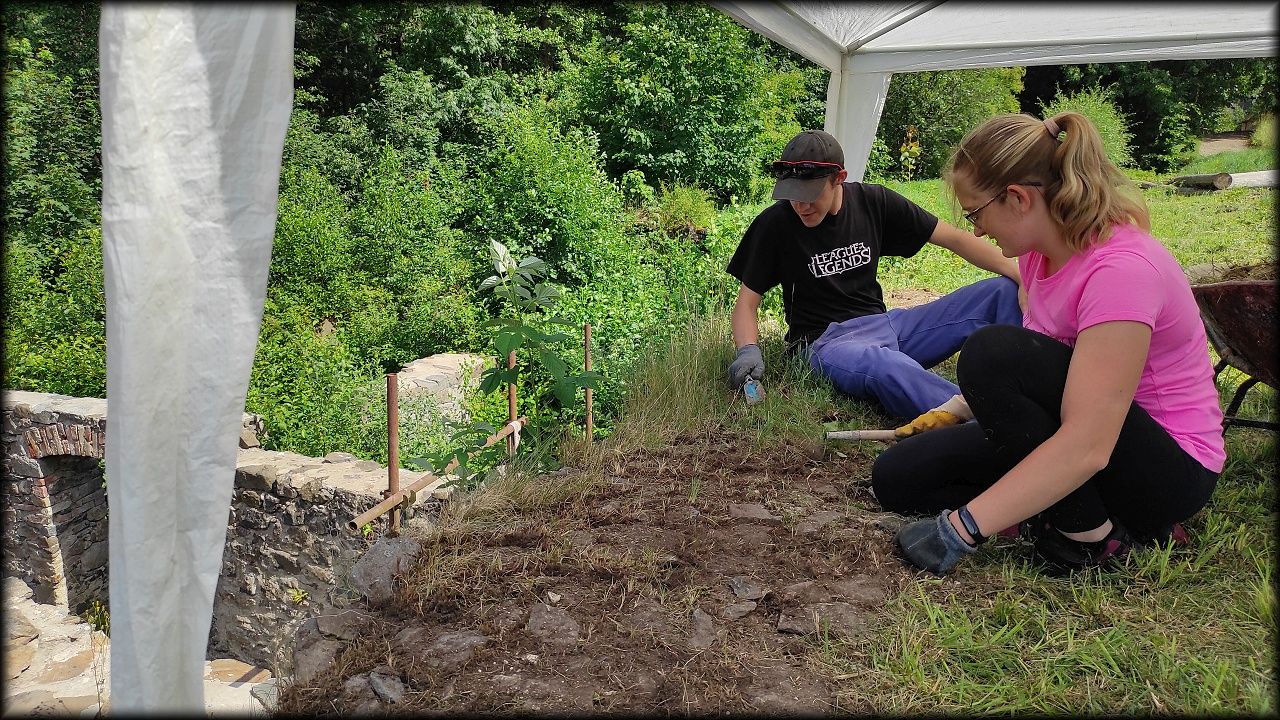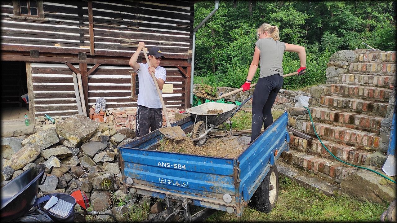 Letošní expedice se tak stala hlavně brigádou, kdy jsme pomáhali s pracemi na skanzenu, hlavně pak u mlýna Týniště 28 (Schelmühle). Většina naší práce je směřována právě sem.