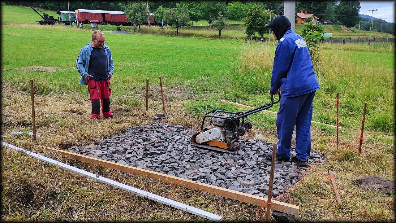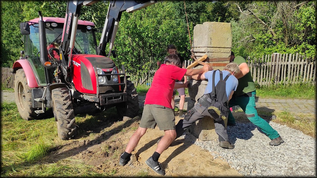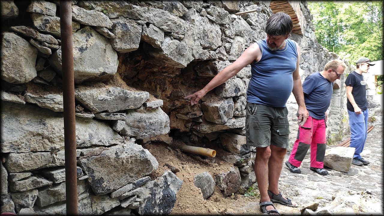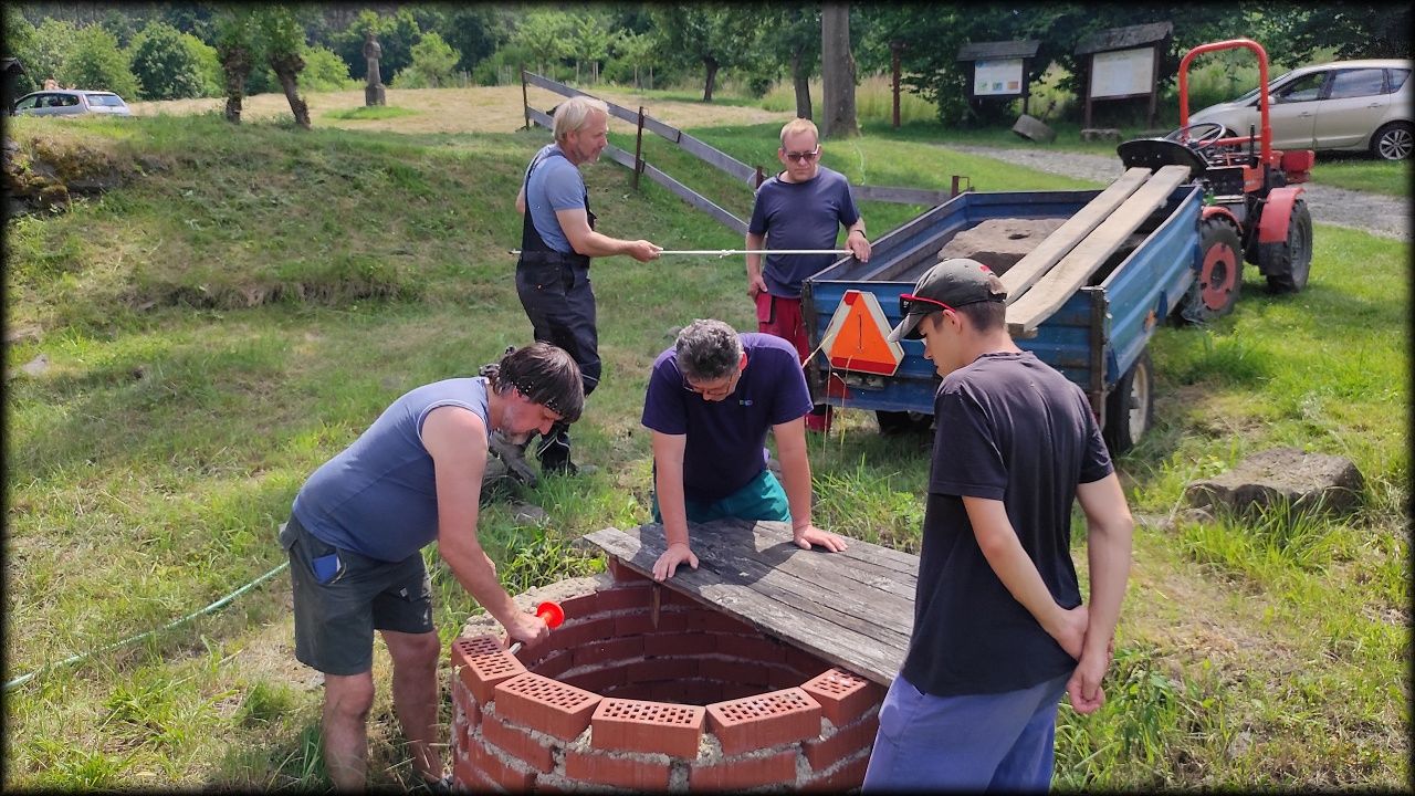 Letošní expedice se tak stala hlavně brigádou, kdy jsme pomáhali s pracemi na skanzenu, hlavně pak u mlýna Týniště 28 (Schelmühle). Většina naší práce je směřována právě sem.