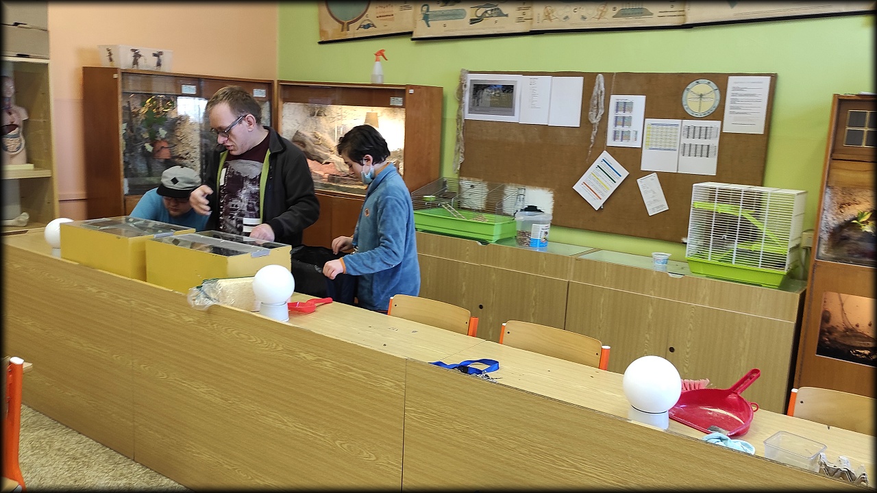 Nejprve jsme se pustili do úklidu spoooouuuusty po skříních roztahaných věcí a porovnali jsme i vše uvnitř skříněk. Stačili jsme ještě vyčistit myši a zvířatům doplnit jídelníček o zeleninu.