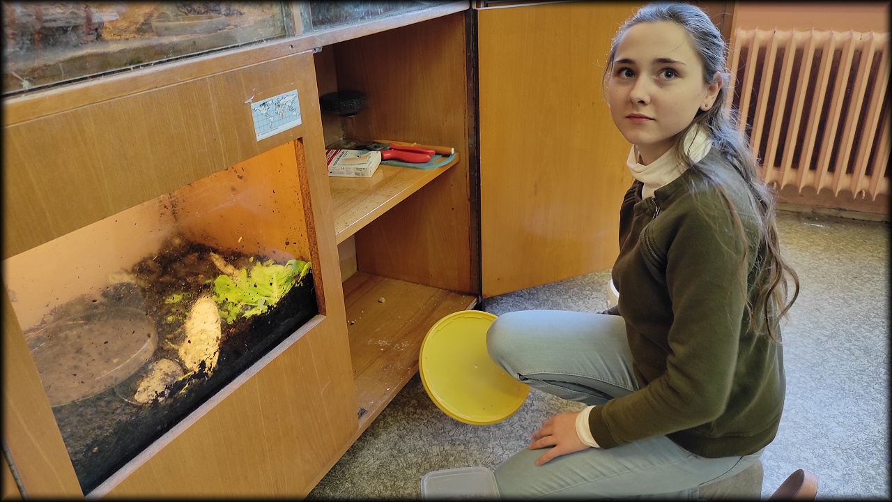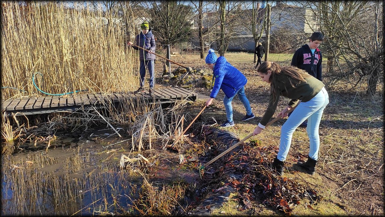 Dnes jsme uklízeli skříně u terárií, ale také jezírko.