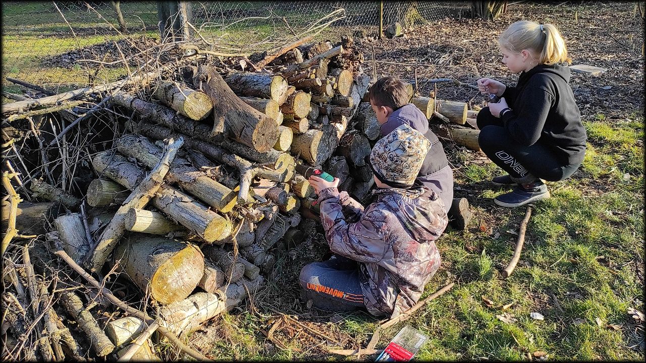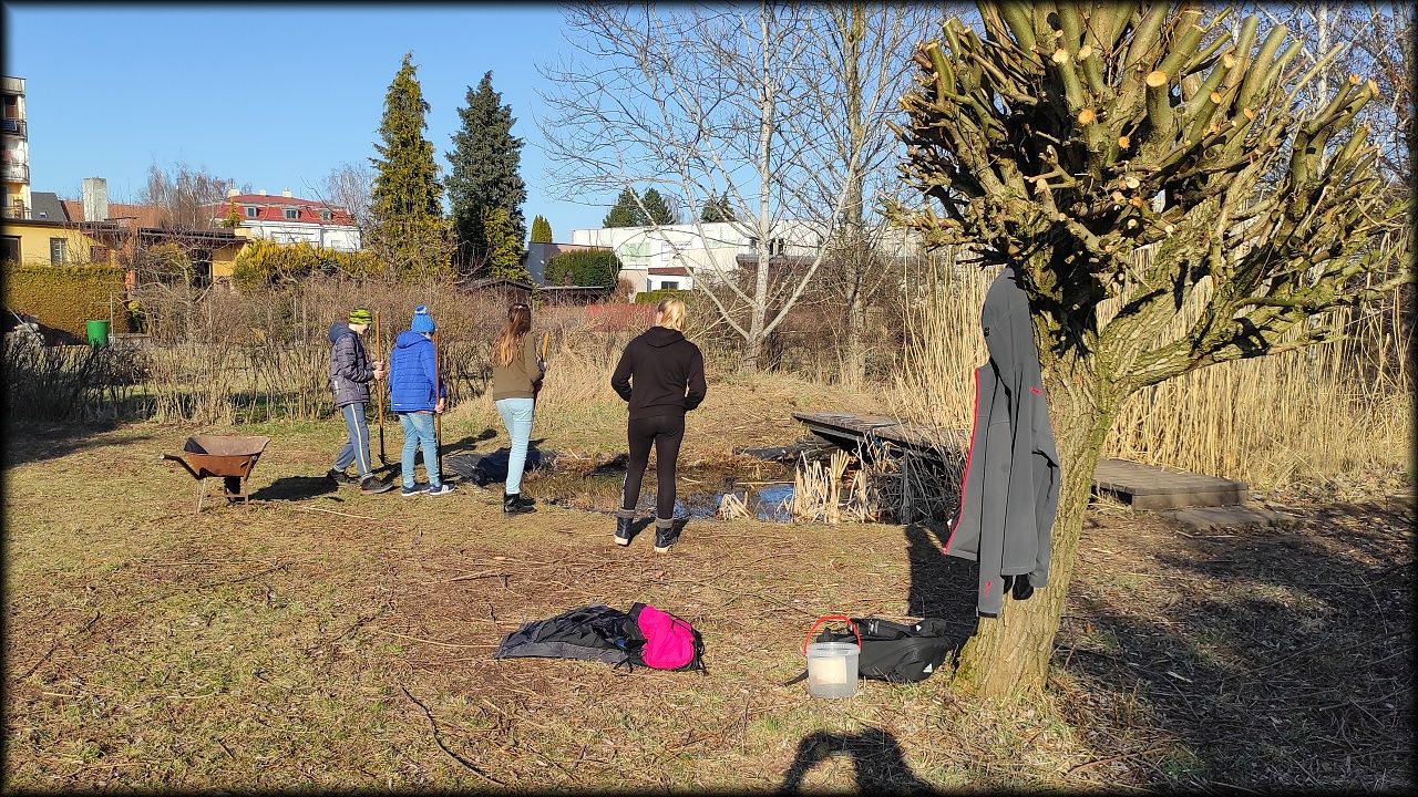 Dnes jsme se pustili hlavně do jezírka, kompostu a hromady dřeva.