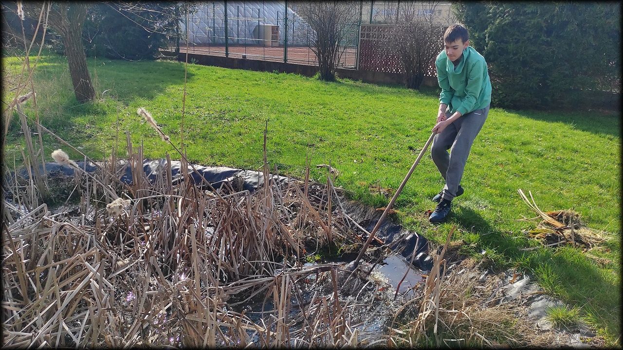 Dnes jsme se pustili hlavně do jezírka, kompostu a hromady dřeva.