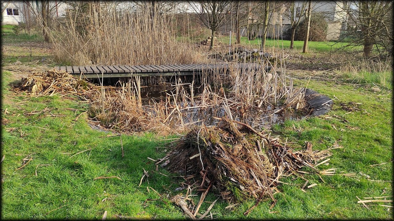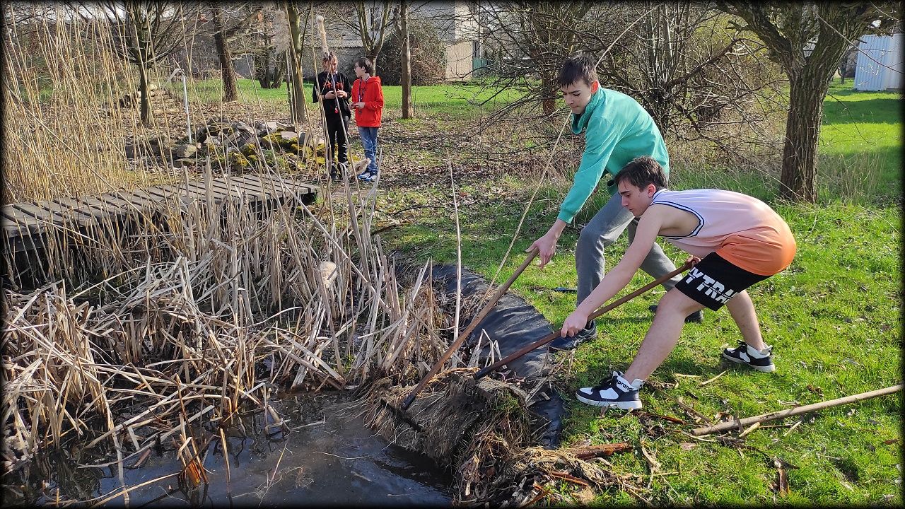 Dostříhali jsme korunu poslední jabloně. A také jsme se pustili do každoroční likvidace přebujelého rostlinstva z jezírka. Vznikl zde opět kousek volné vodní plochy. Dnes tu po nás zůstaly u jezírka kupy vytaženého materiálu. Dáváme tím šanci nechtěně vyloveným živočichům, aby se vrátili zpět do vody. Kupy uklidíme nejspíš v sobotu.