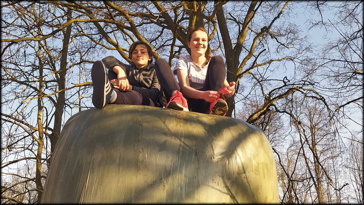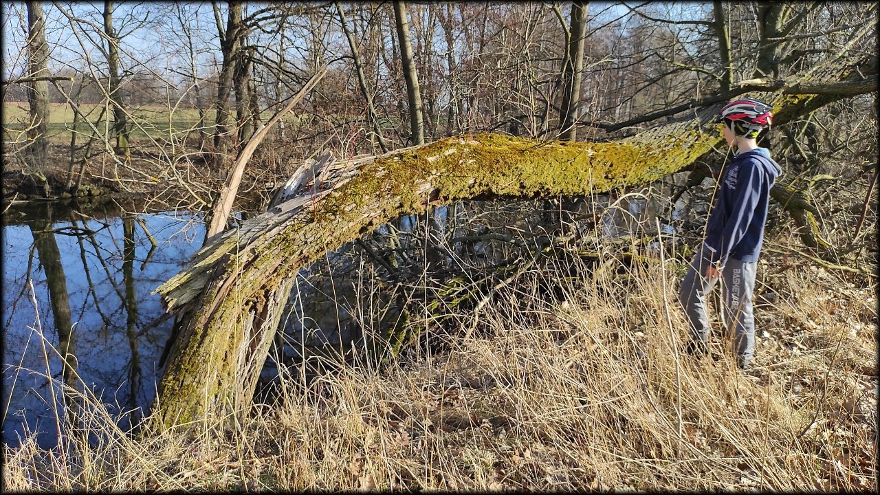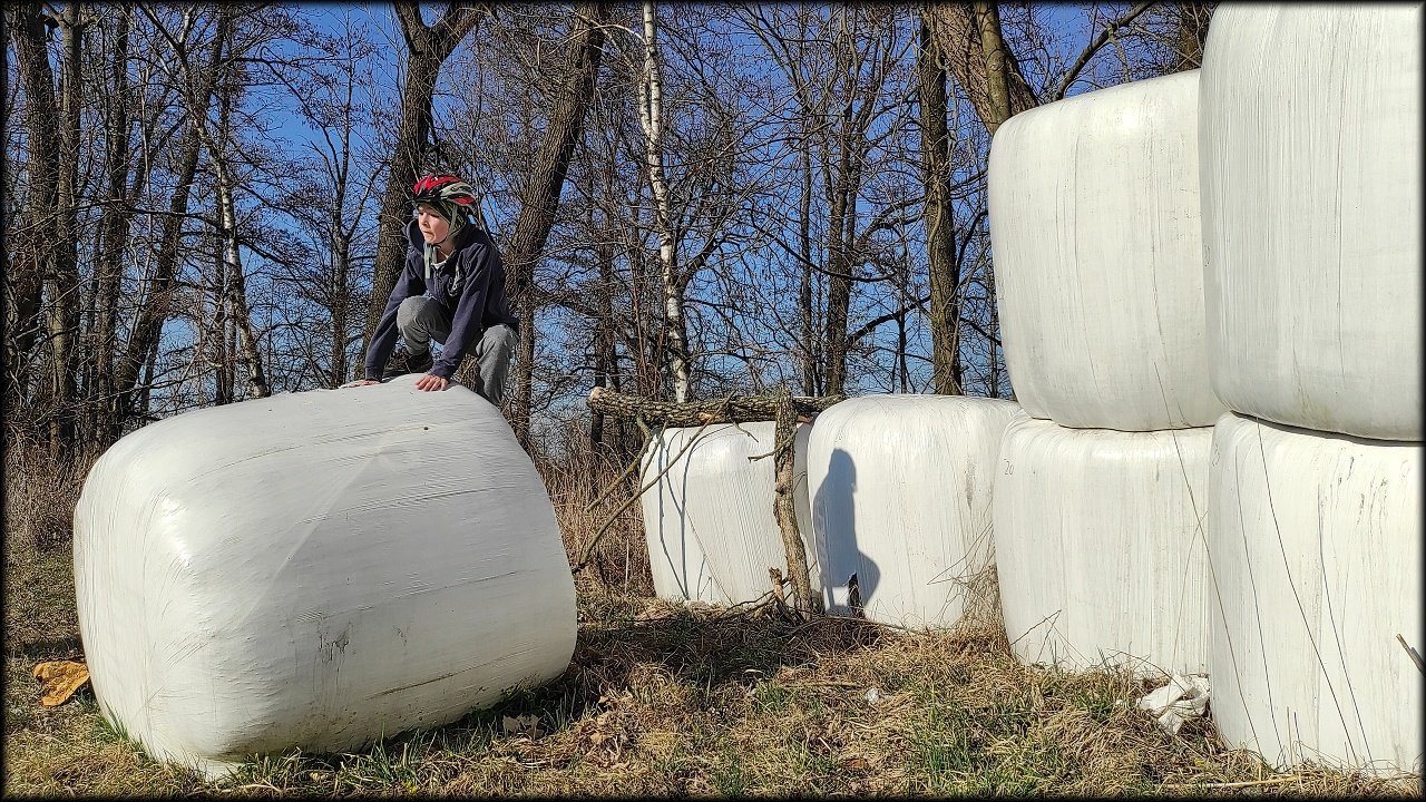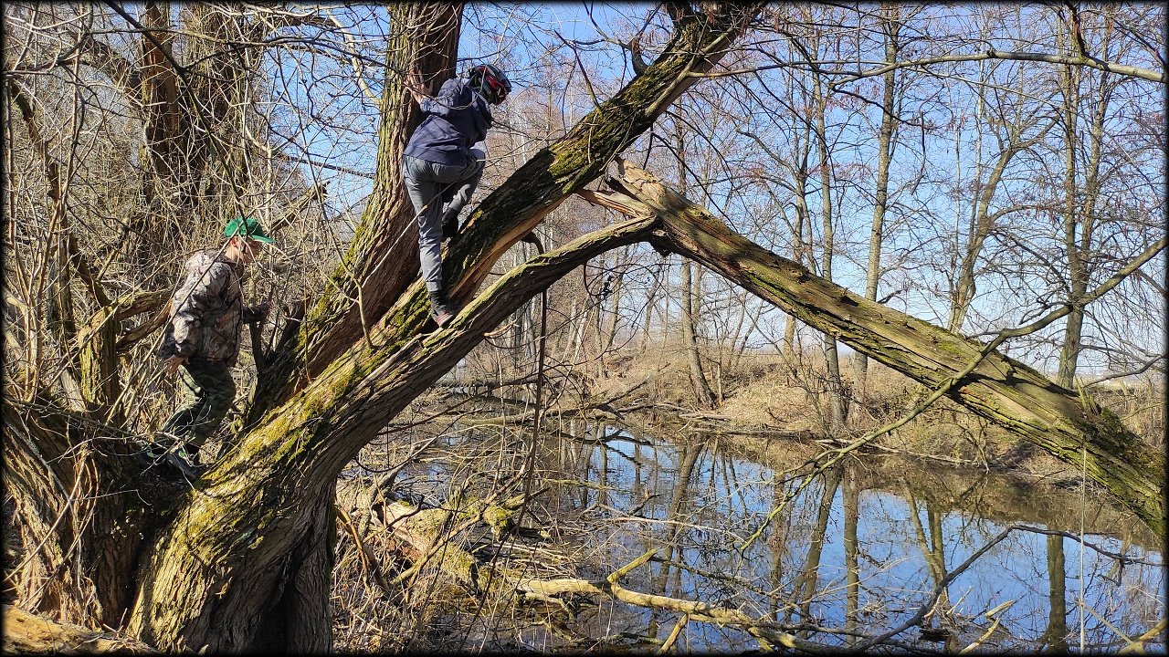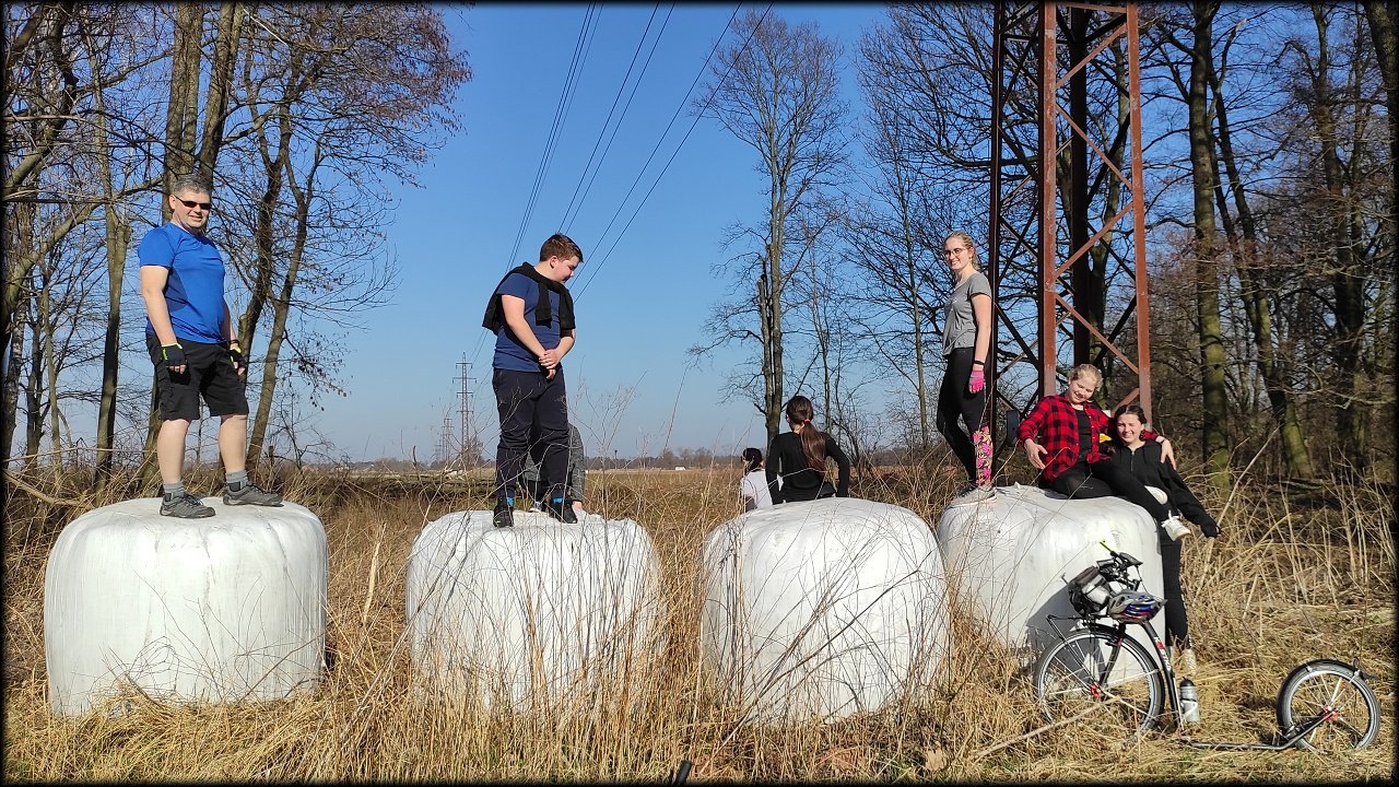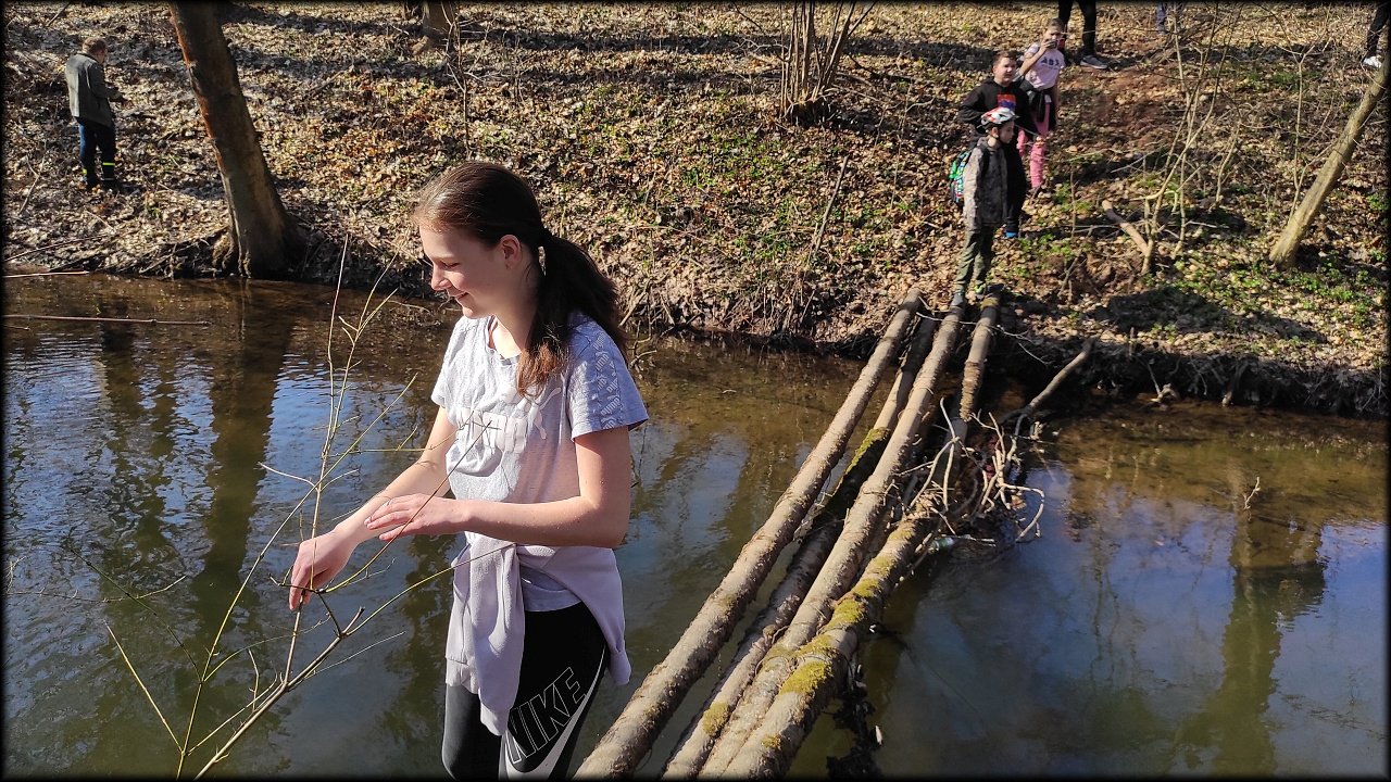 Po krátké zastávce u ústí Mlýnského náhonu jsme se přesunuli k přírodní památce Trotina. Tady jsme obdivovali nejen staré koryto Labe s takřka pralesními břehovými porosty, ale i složené balíky sena, které posloužily jako tělocvičné náčiní. Zaujala nás i budka spadlá na zem, která měla zazděný vletový otvor.