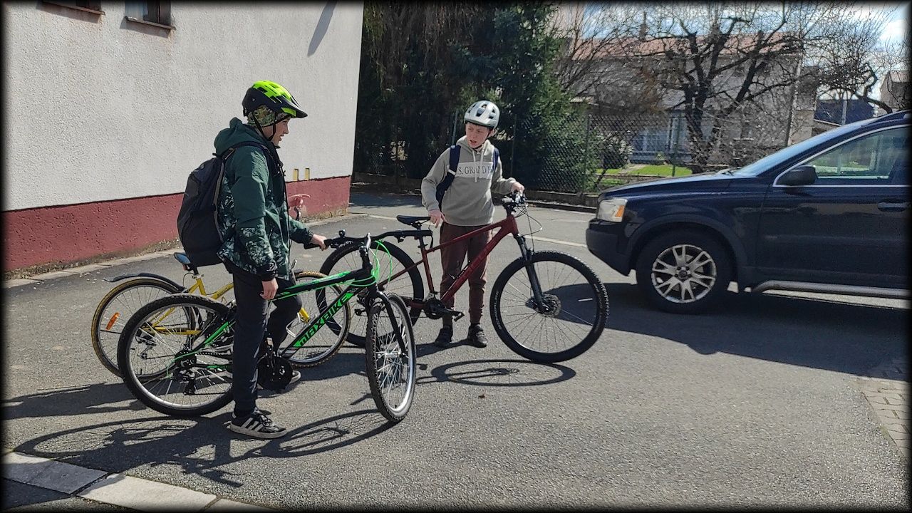 - výjezd na kolech směrem na Lochenice - kolo dle vyhlášky, přilba