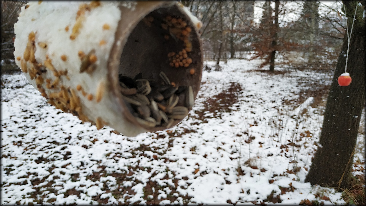 U prvního krmítka na mne čekalo příjemné překvapení. Našel se někdo, kdo do něj dosypal krmení.