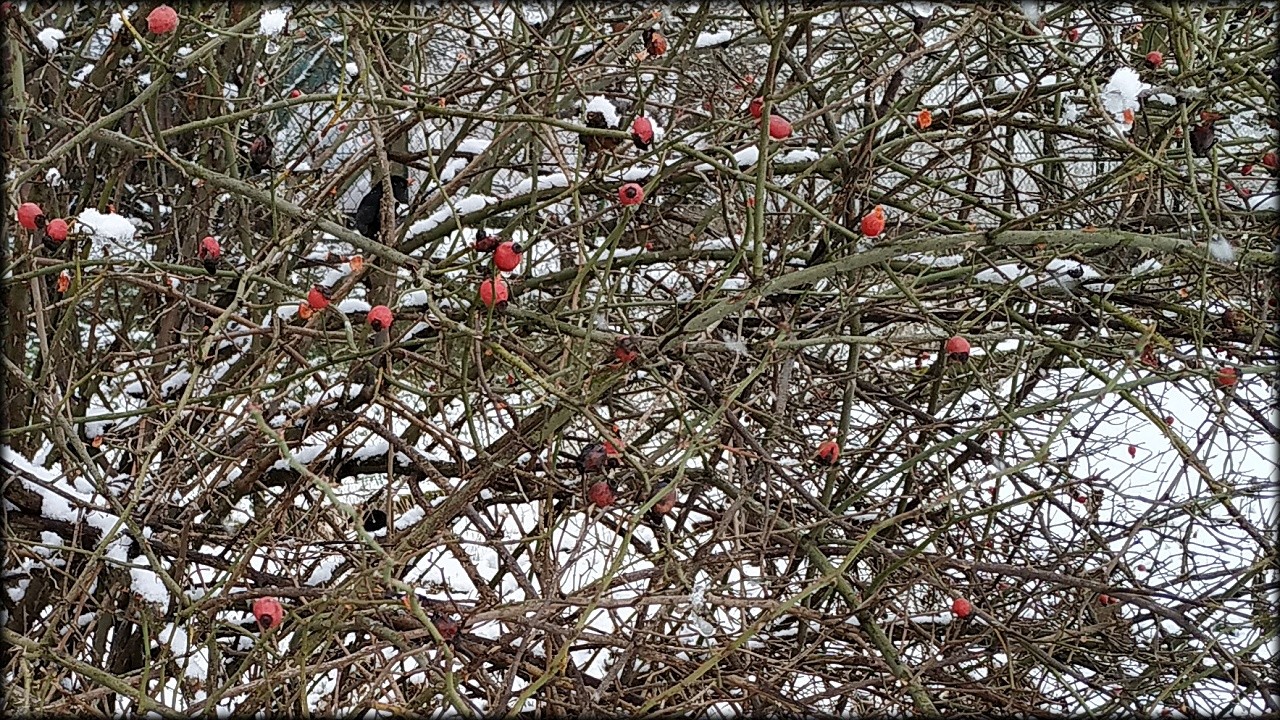 Při pohledu ke krmítkům u nářaďovny jsem zahlédl odlétat strakapouda. Jinak zde byli ptáci běžných druhů. Sýkora koňadra, sýkora modřinka, kos černý, samec pěnkavy obecné a hrdlička zahradní.