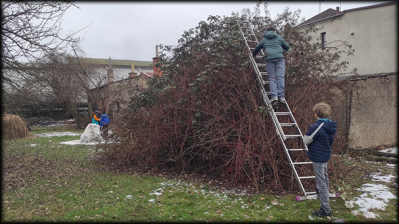 Dnes jsme se pustili hlavně do jezírka, kompostu a hromady dřeva.