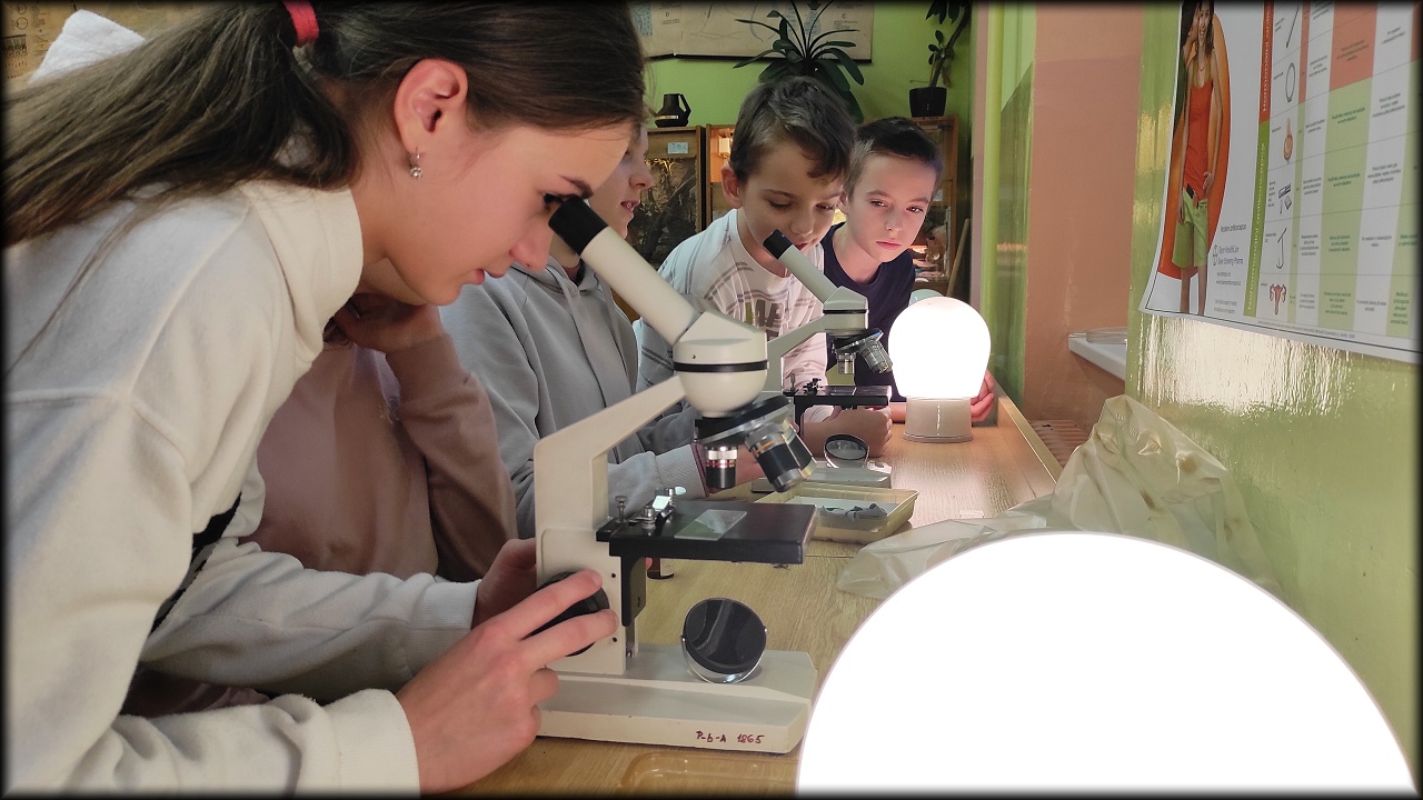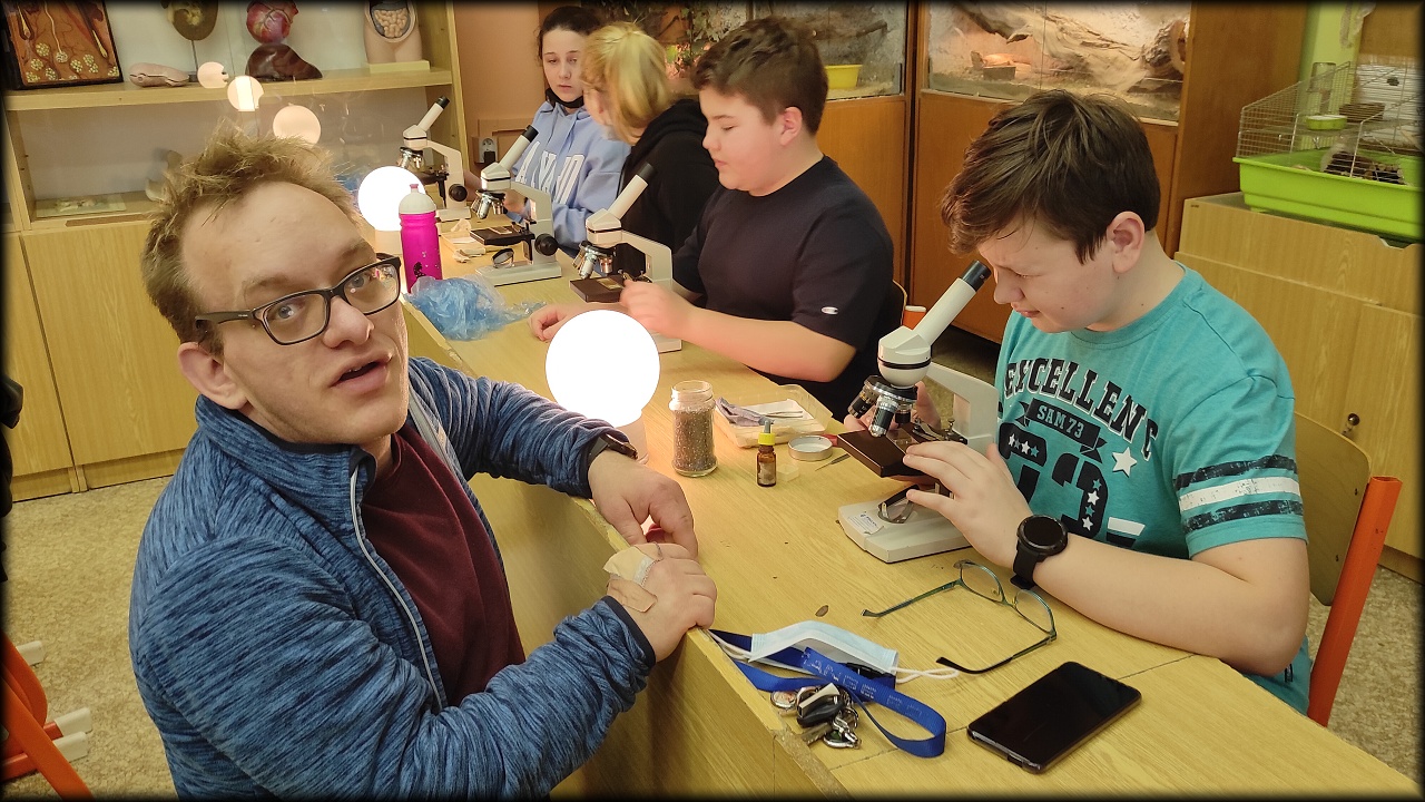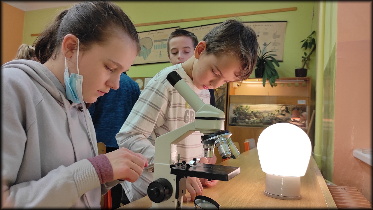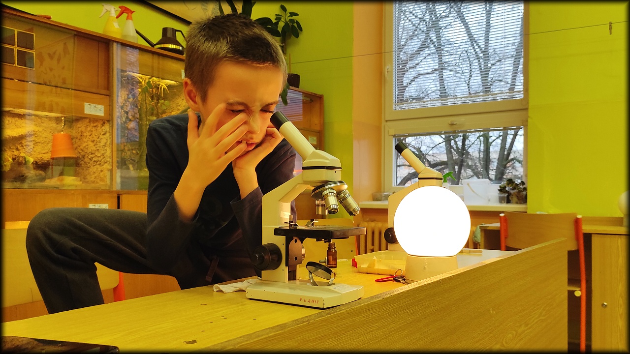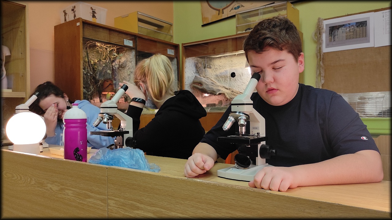 Využili jsme teplého začátku ledna, kdy naše jezírko rozmrzlo, a zkusili jsme nalovit něco málo pod mikroskop. Na výběr jme měli, kromě řas, bahna ze dna a planktonních organismů, i trvalé preparáty ze sbírek školy. A samozřejmě jsme se mohli kouknout i na další drobnosti, které se nám do mikroskopu vešly! Nestihli jsme si prohlédnout ani zdaleka vše, co jsme chtěli, tak si jistě v budoucnu mikroskopování zopakujeme!