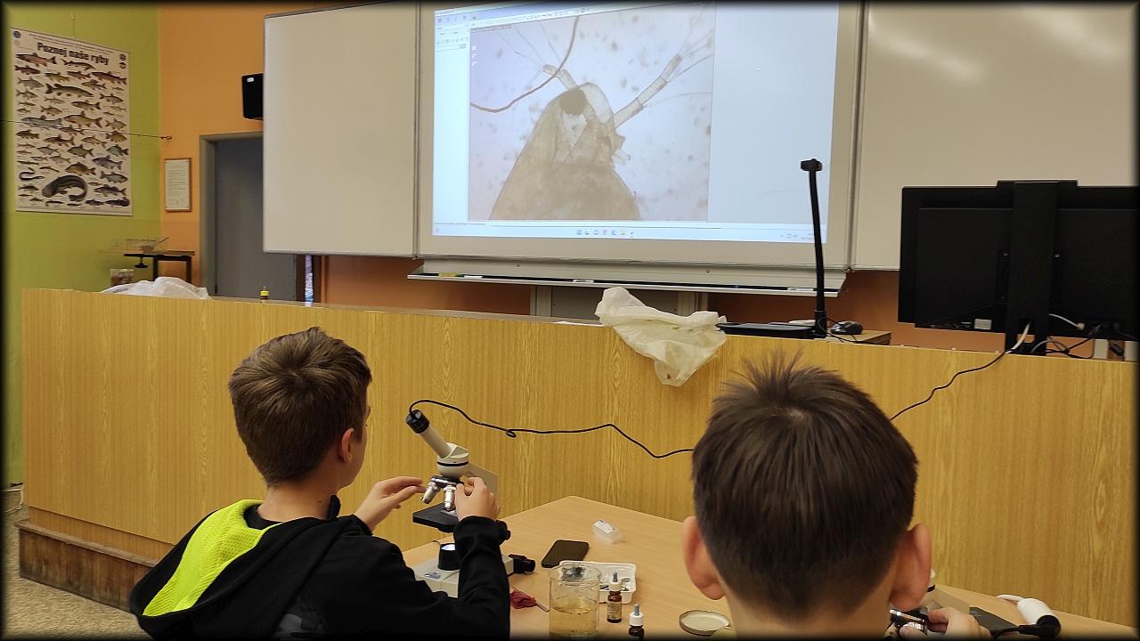 Nejen, že jsme opět zkoumali breberky z jezírka, prohlédli jsme si i nálevníky, pár trvalých preparátů a pak vše možné, co se vešlo pod mikroskop!