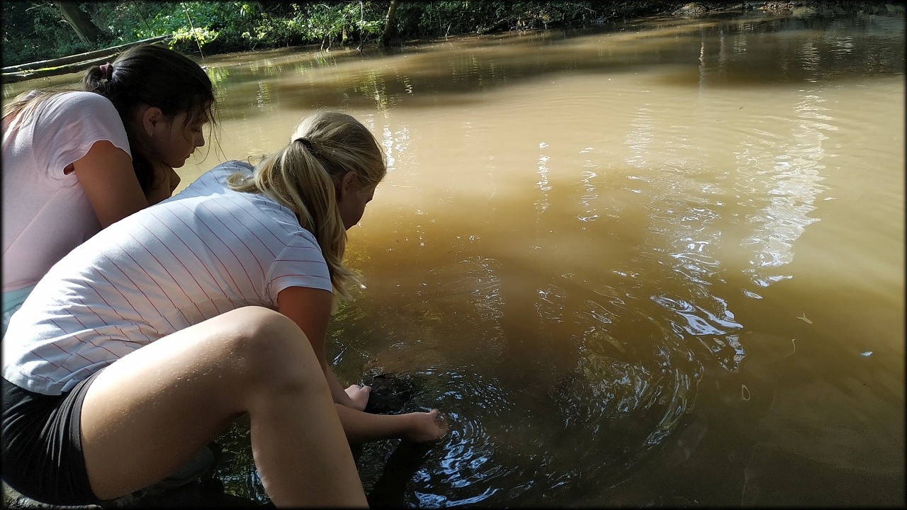 U náhonu nás přivítala kalná voda. I tak jsme zde ale mohli vidět alespoň bezobratlé živočichy, kteří se ukrývali na kamenech ve vodě.