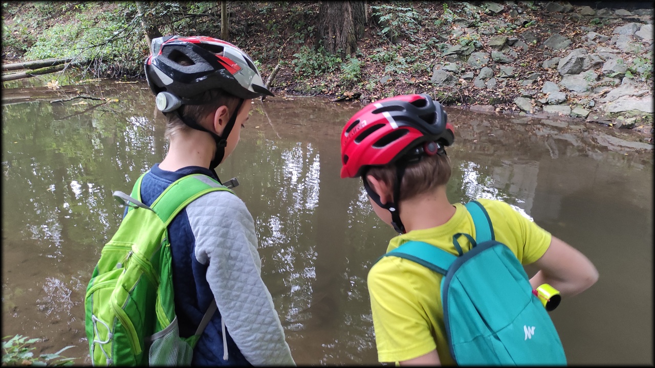 U Mlýnského náhonu někteří prokázali svou tělesnou dovednost při překonání toku po staré lávce, jiní zkoumali život v okolí. Čas utekl jako voda a už se těšíme na příští vyjížďku na kolech!