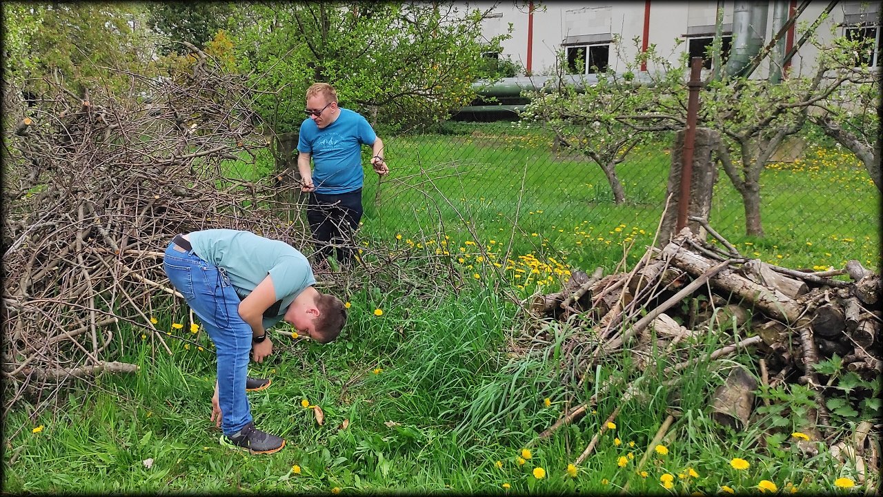 Dnes jsme se pustili hlavně do jezírka, kompostu a hromady dřeva.