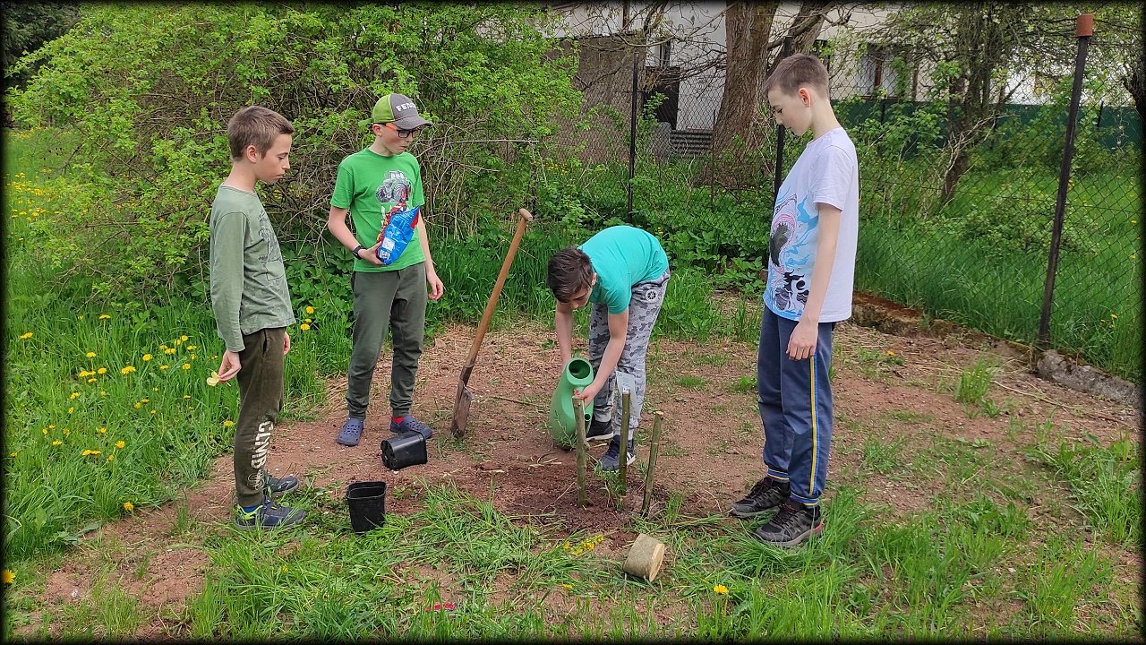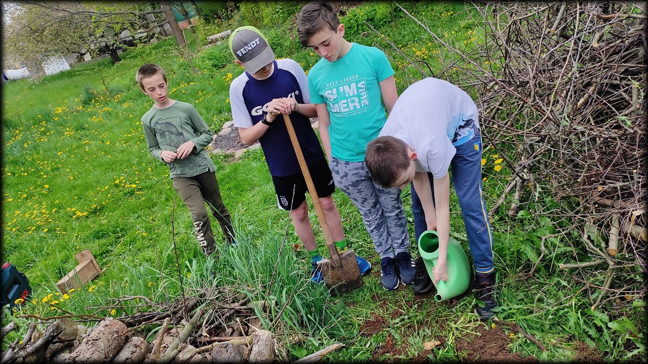 Dnes jsme, kvůli horší předpovědi počasí, volili pobyt na školním pozemku.