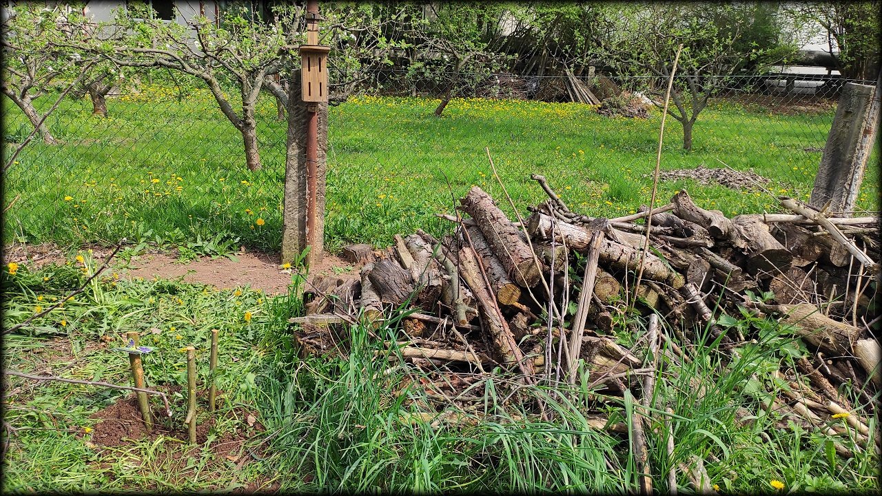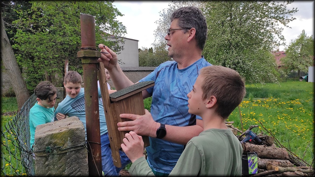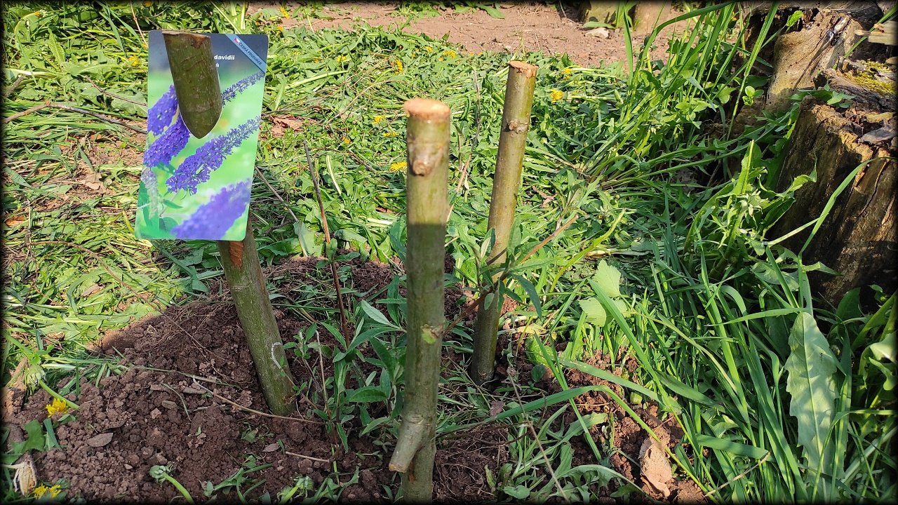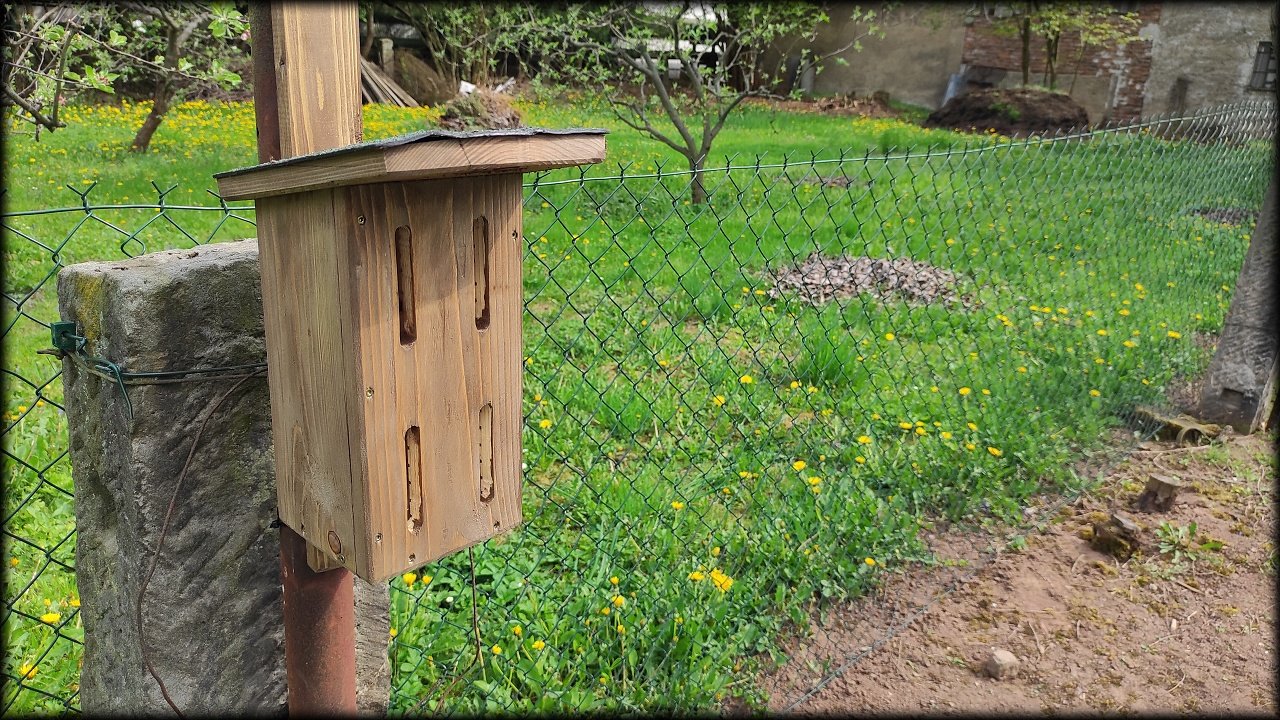 No, a předpověď se nakonec nevyplnila. Bylo krásné, skoro letní, počasí! Ale nevadí. Stejně jsme potřebovali ještě vyvěsit poslední budku, budku pro motýly. Navíc jsme se rozhodli zdejším motýlům nabídnout i něco lákavého. Vysadili jsme čtyři komule Davidovy - neboli motýlí keře. Uvidíme, jak rychle nám porostou a jestli se motýlům budou líbit.