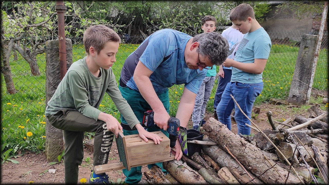 Na závěr se zde ještě zdrželi oba vedoucí a trochu doplnili náš hmyzí domek.