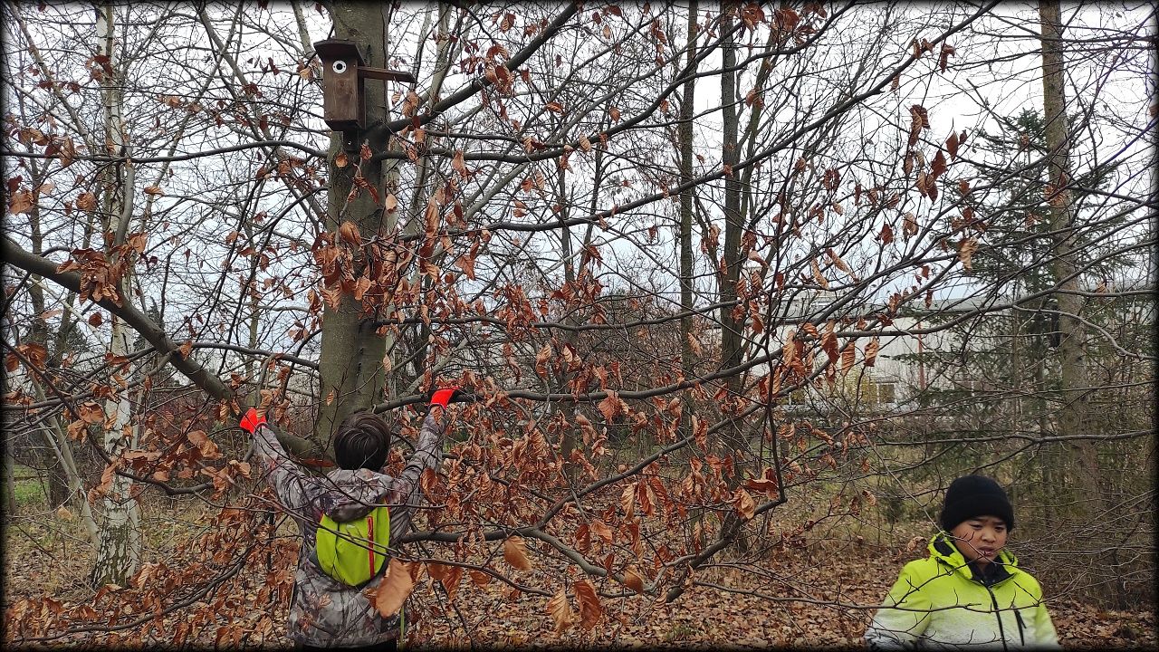 Nejprve jsme se došli postarat o pěvce. Tady jsme zjistili, že tu někdo škodí! Opět jsme našli otevřenou budku, tentokrát tu pro modřinky.