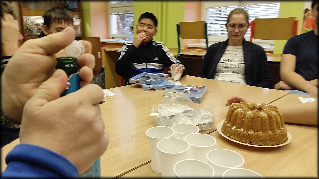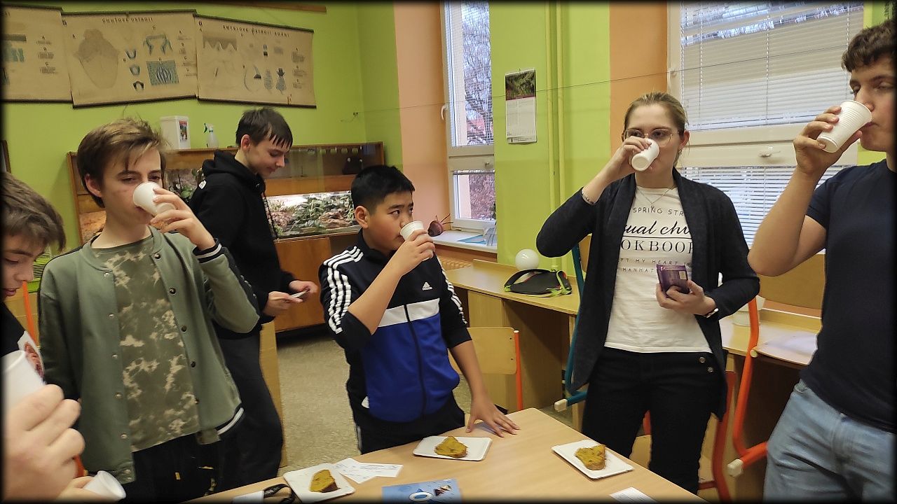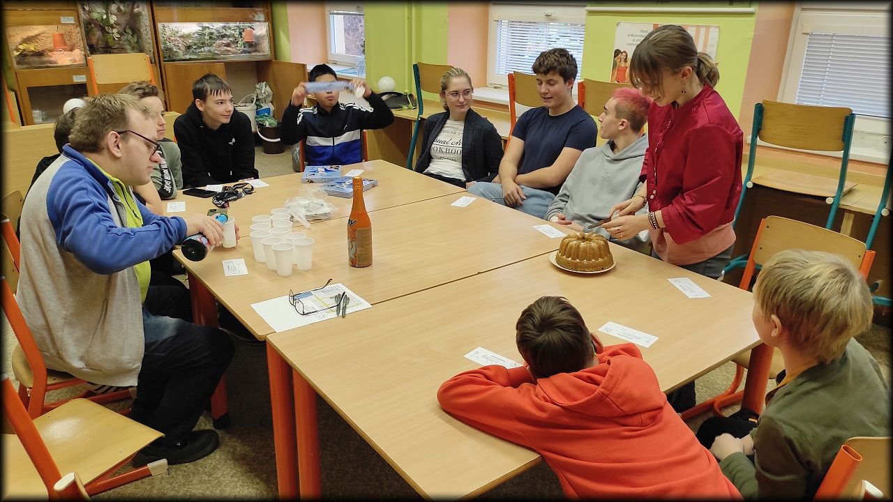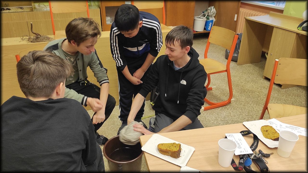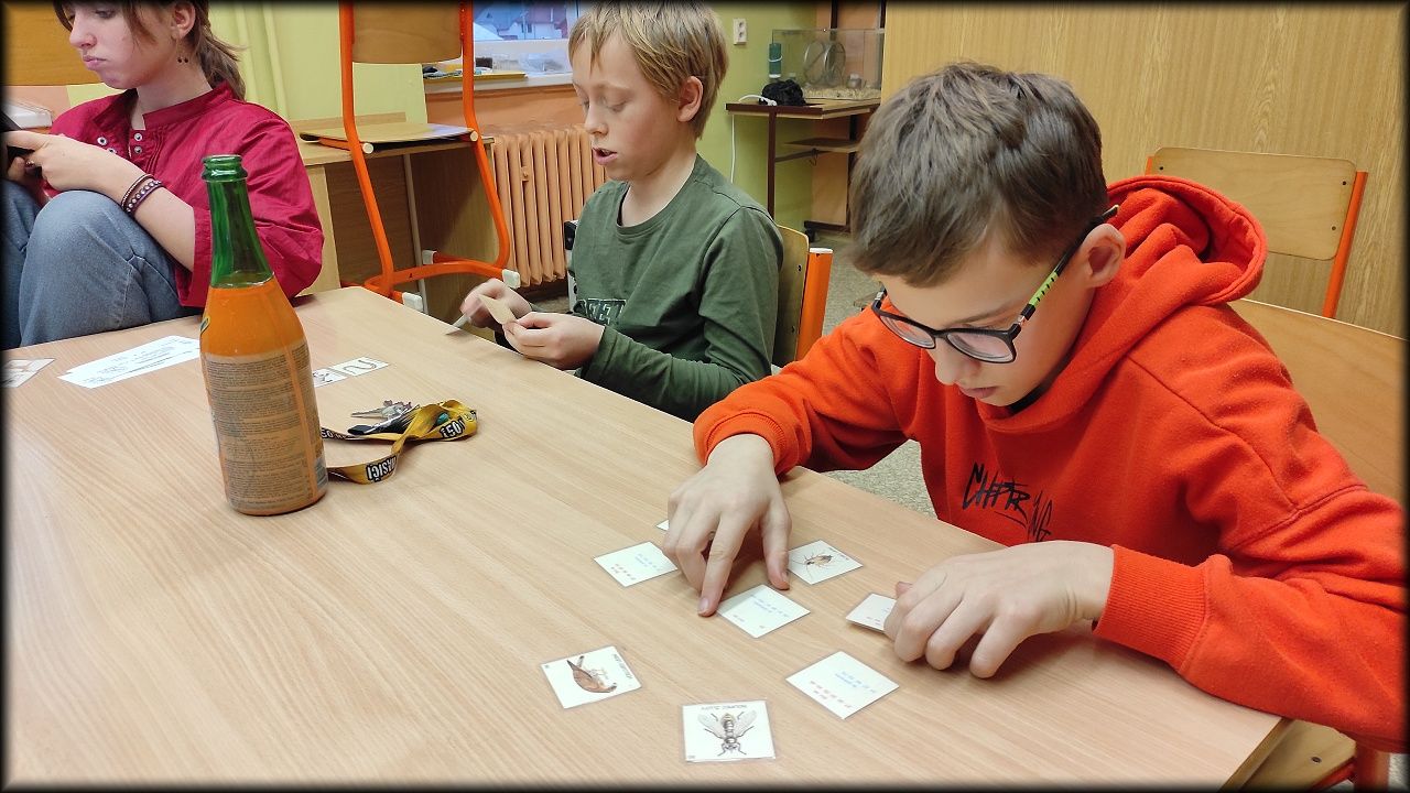 Po přesunu do tepla jsme se postarali o naše zvířecto, a už jsme se mohli pustit do oslav. Pavel s Martinem oslavili narozky, Simča svátek. A po slavnostní hostině jsme dohráli hru z minula. Vytvořili jsme lesní potravní sítě.