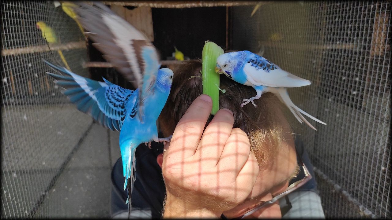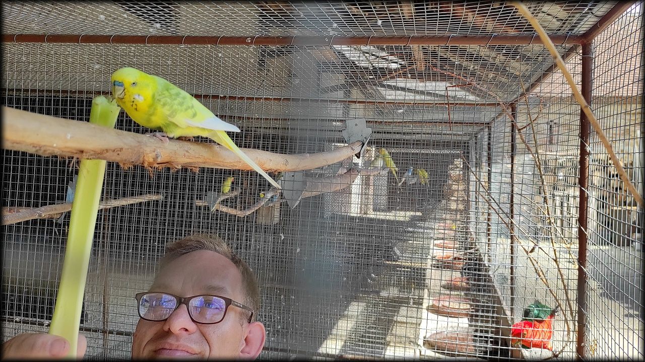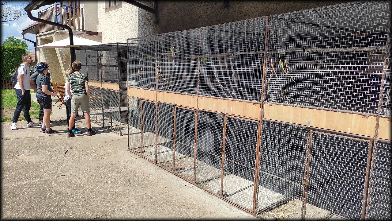 O každém druhu, který chová, nám pověděl pár zajímavostí. Je tu vidět pěkný kus každodenní práce! Už víme, že i jinak poměrně plachý pták se dá zlákat dobrým soustem. Pak se nechá i podrbat. No, i my jsme se nechali zlákat. Jen to drbání nepřišlo.