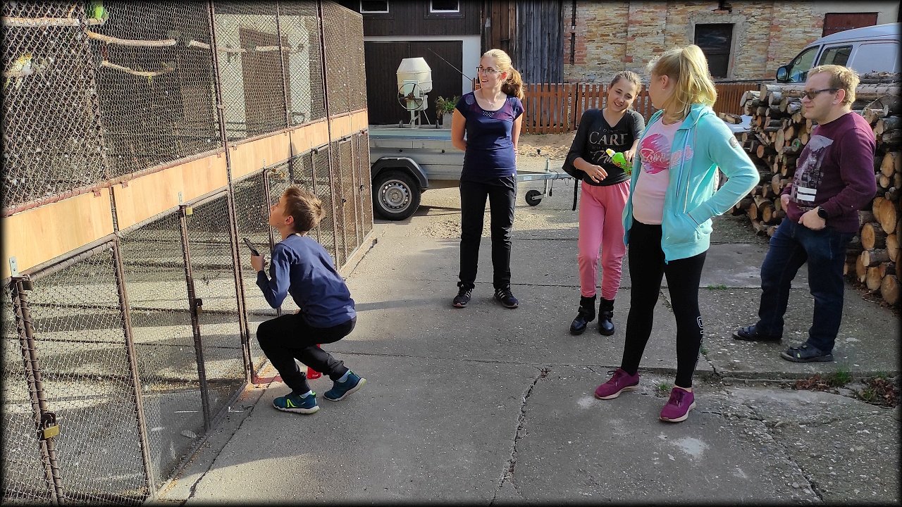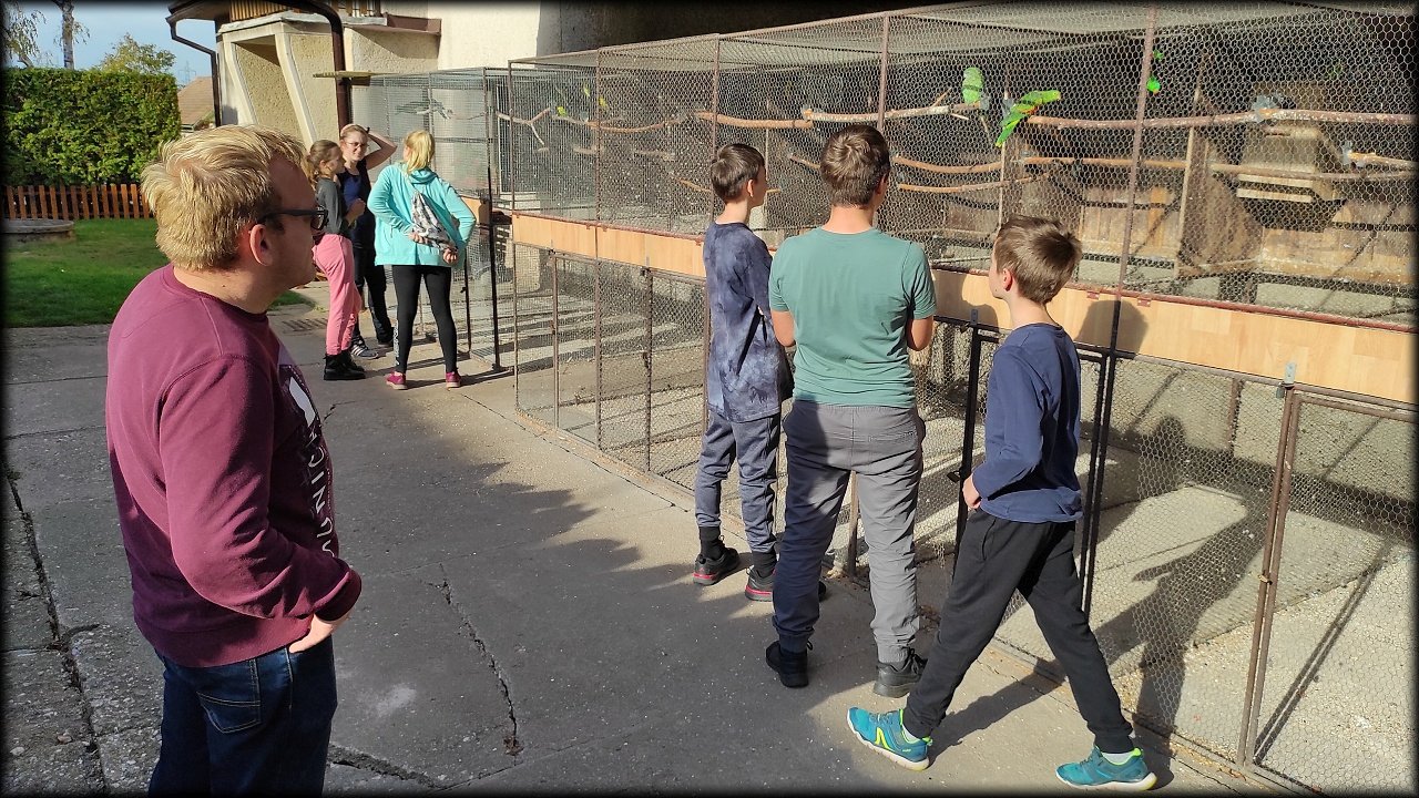 Počasí bylo více než exkluzivní, tak nám již nic nestálo v cestě. U Pavla jsme si nejprve prohlédli voliéry s papoušky, pak nám Pavel řekl pár základních informací o jejich výskytu i chovu. Nakonec jsme si podrbali hlídače, koukli jsme do požární nádrže, a čas nás vyhnal zpět do Smiřic.