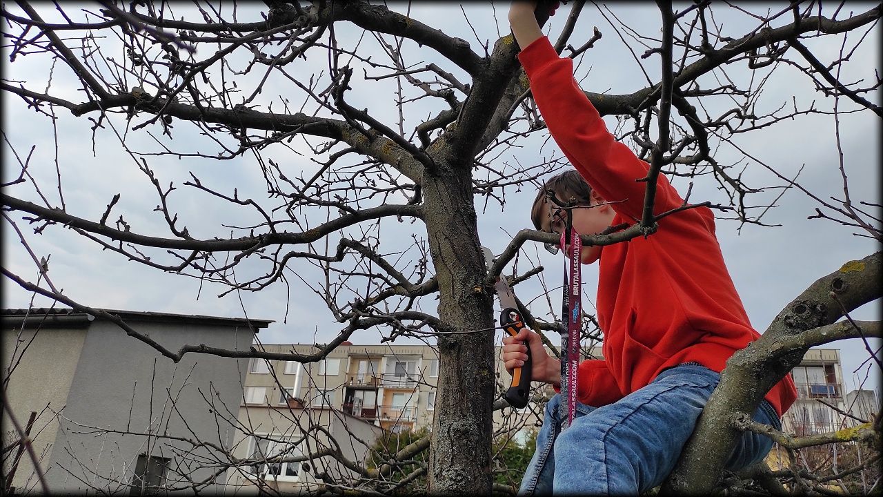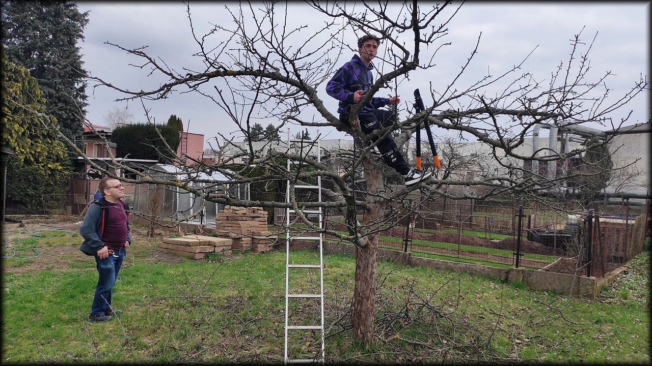 Vyrážíme dokončit údržbu korun jabloní.