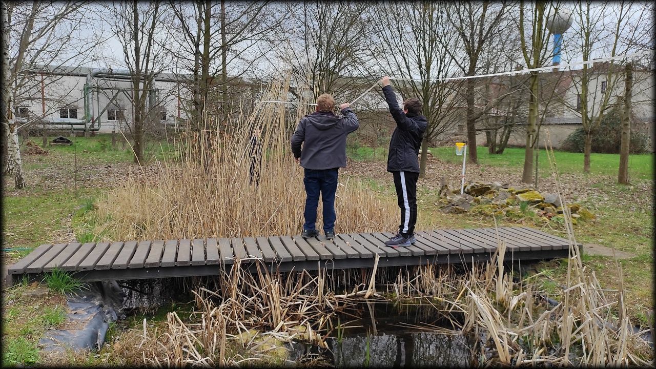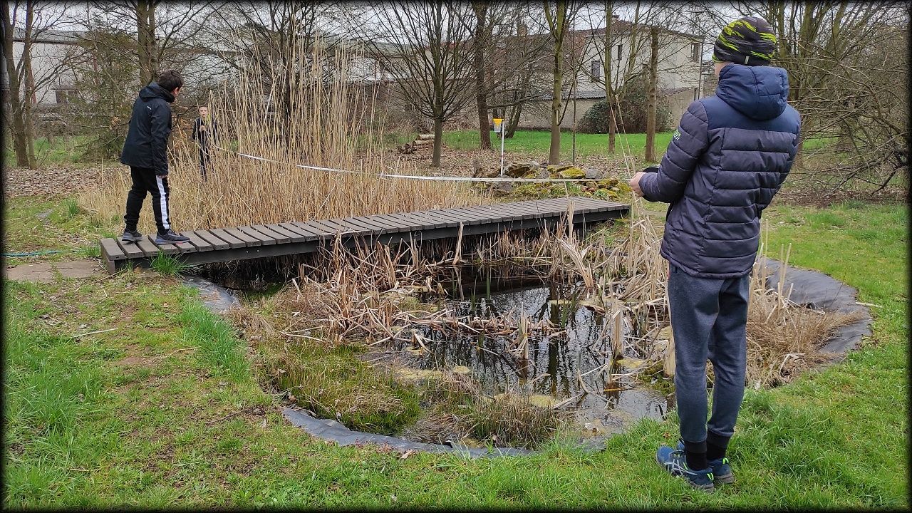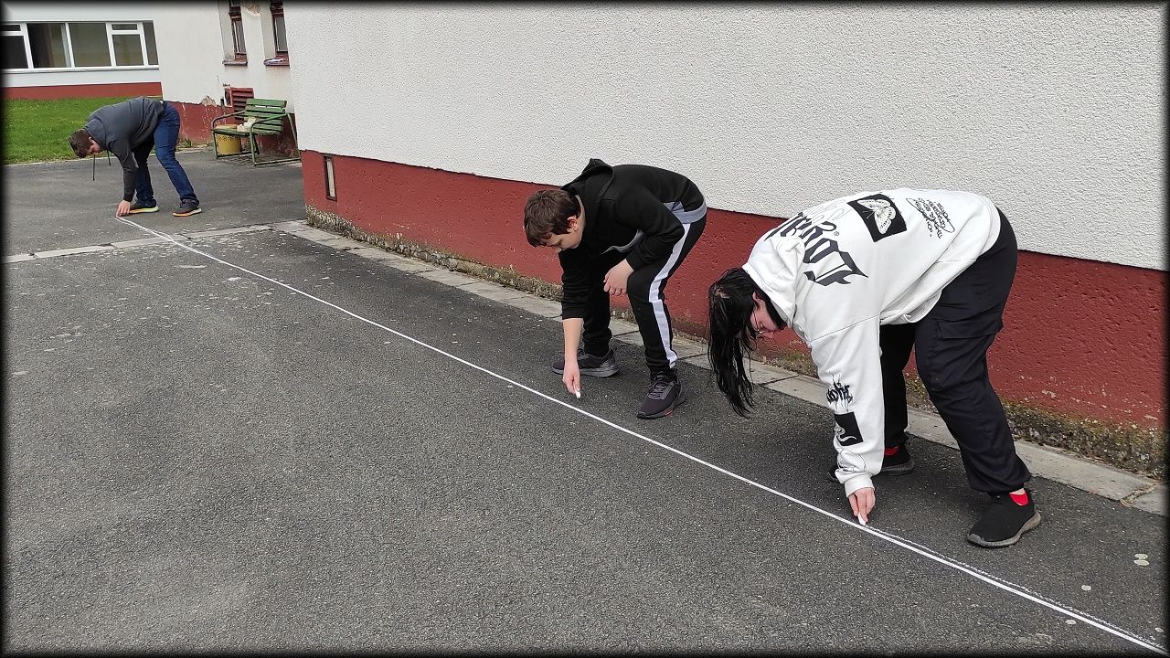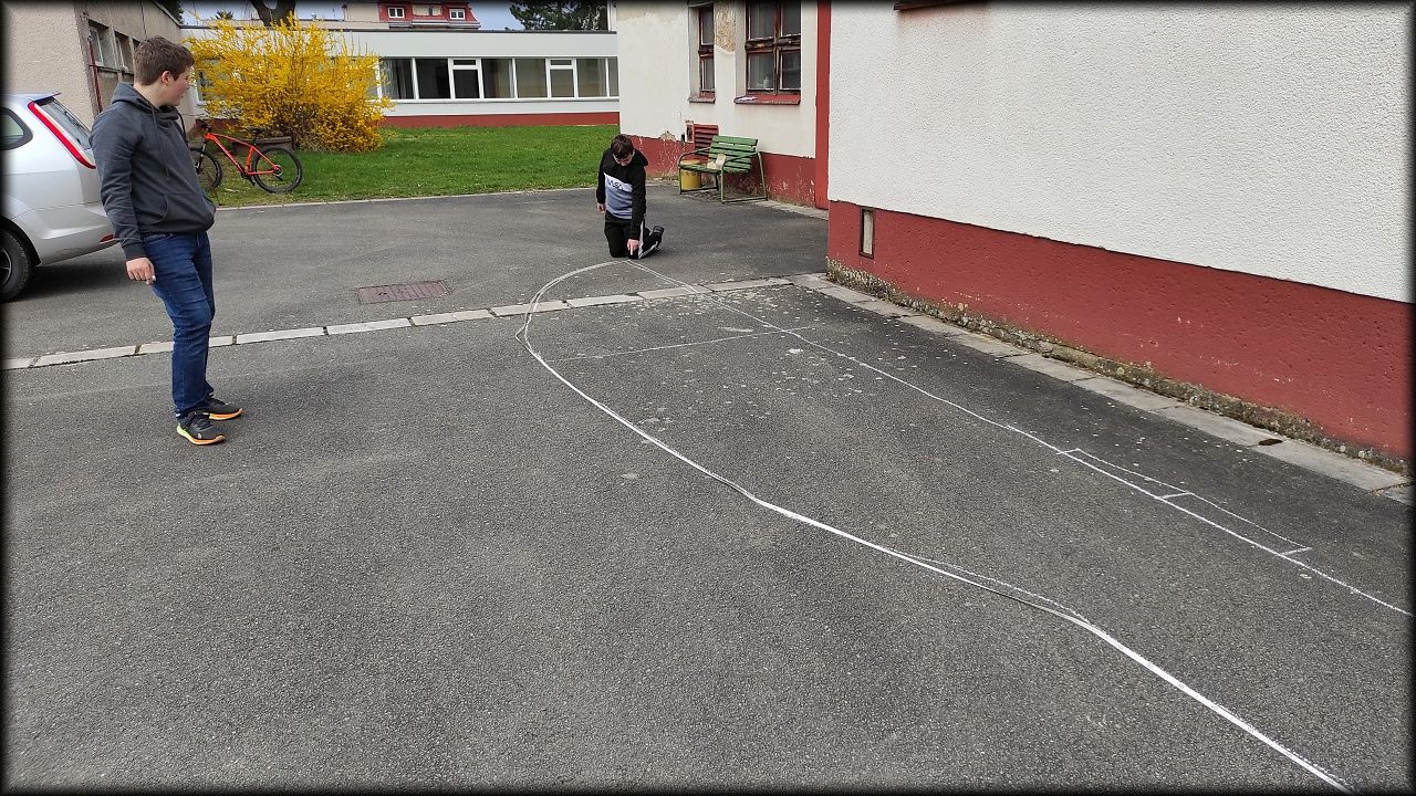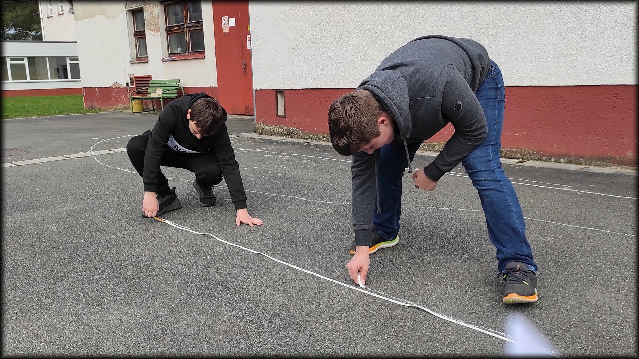 Dosluhující, již čtvrtstoletí staré jezírko, má být doplněno druhým. A to je potřeba rozmyslet a naplánovat. Nejprve jsme pečlivě změřili současné jezírko, aby nás v zápětí vyděsilo, jak je vlastně velké! Krásných 11,5 x 5,3 metrů! A nové by mělo být prakticky jeho kopií. Pro získání potřebných rozměrů fólie jsme na školním dvoře nakreslili pomocné náčrty. První fáze plánování je tak za námi.