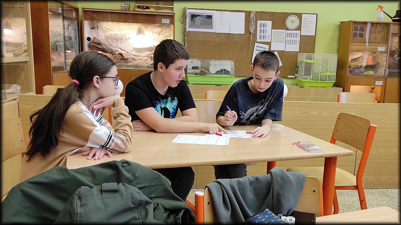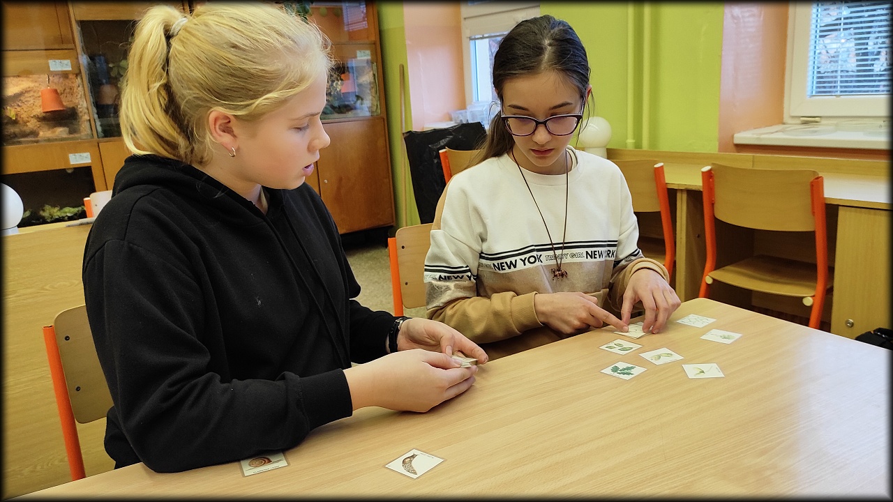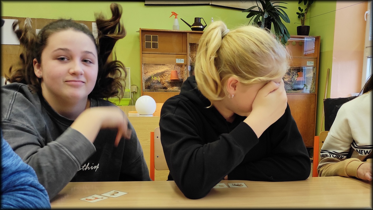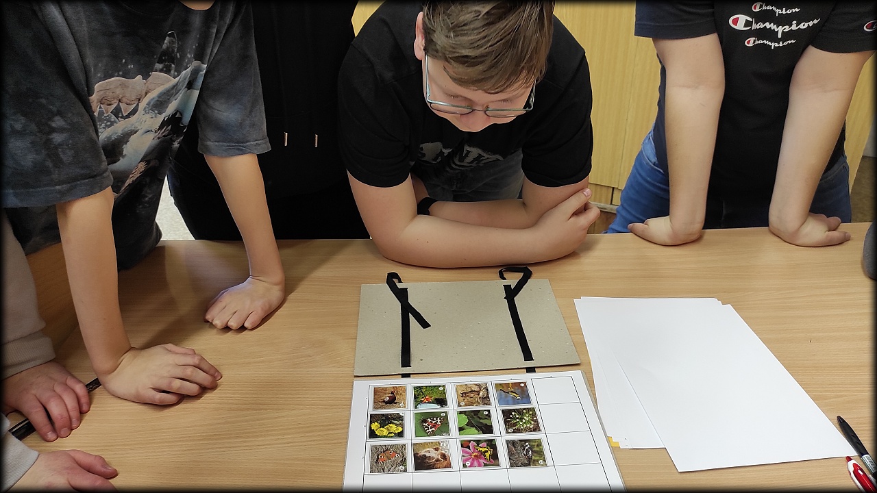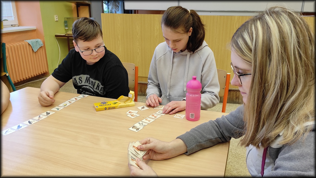 Ale než jsme se tam dostali, nejprve jsme se stavili na pozemku dosypat krmítka pro ptáky a vzít ostružiny pro strašilky. Po obstarání našeho koutku živé přírody jsme svedli nelítostný souboj s pamětí. Museli jsme nejen poznat rostliny a živočichy, ale navíc si zapamatovat jejich pozici na herním poli. No, nebylo to jednoduché!