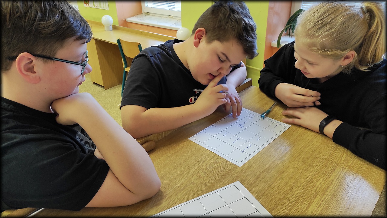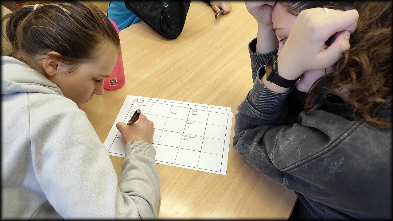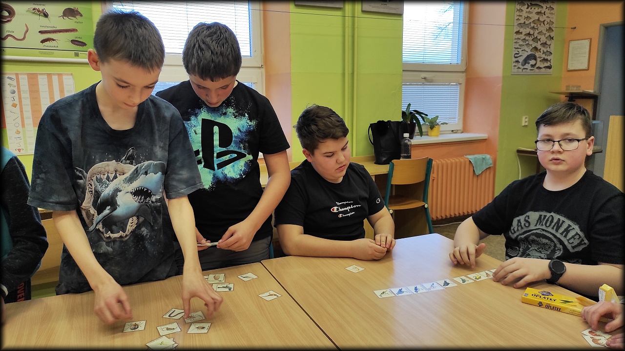 Na lesních organismech jsme si pak procvičili potravní vztahy. Dnes jsme jen hledali potravu pro jednotlivé druhy. Někdy příště ale vyzkoušíme celé potravní řetězce, nebo dokonce potravní síť!