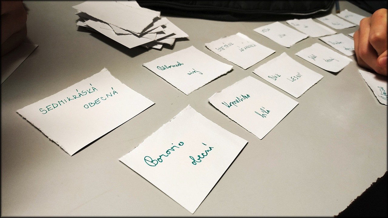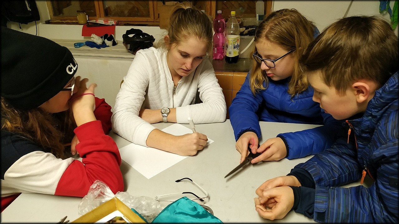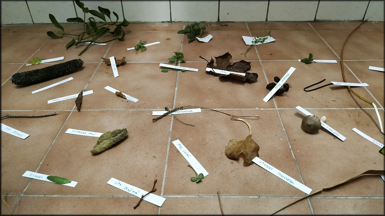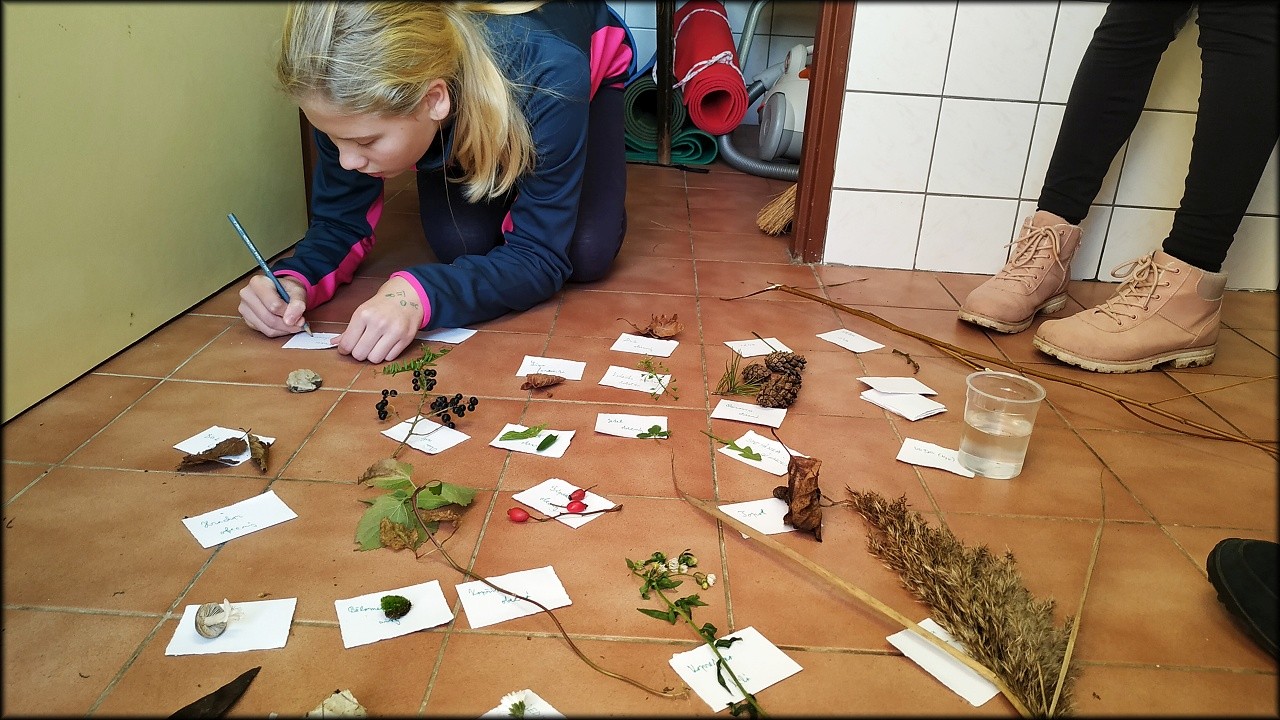 A protože ještě není sníh, můžeme se směle pustit do poznávání zdejší přírody. Nejprve jsme si nanosili vzorky přírodnin do klubovny, pak jsme jim připravili a správně přiřadili popisky, a nakonec jsme podle obrázků vyhledávali organismy, se kterými se běžně, ale i vzácně, můžeme shledat u nás na Oboře.