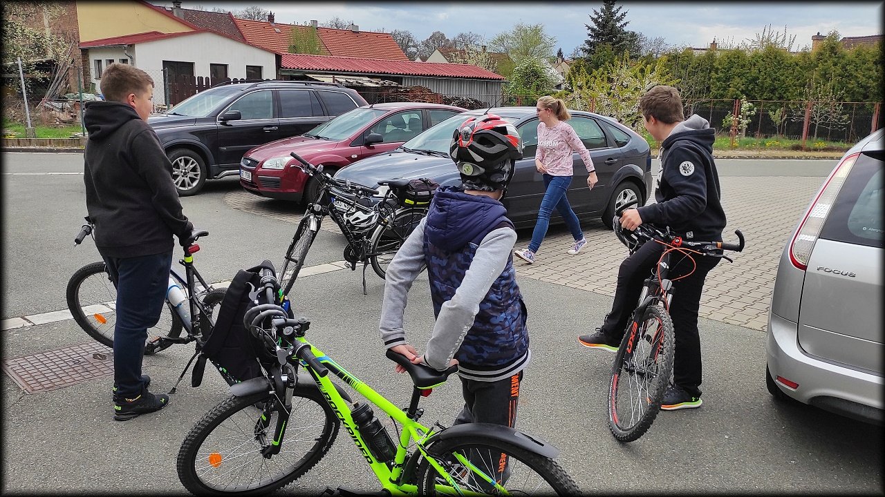 - výjezd na kolech směrem na Lochenice - kolo dle vyhlášky, přilba