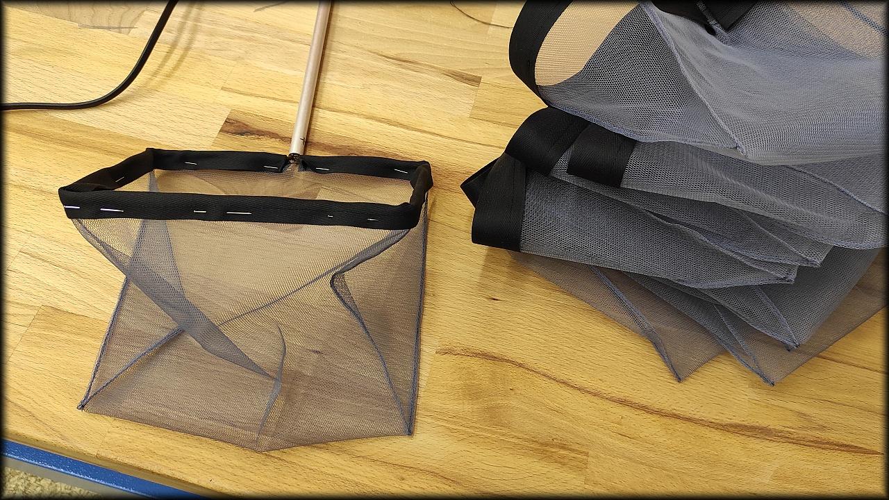 Nebudeme vše šít ručně. Základ síťky obšitý lemovkou připravíme na stroji. Práci nám to jistě usnadní a urychlí. Vše je tak připraveno na středu, kdy přišijeme síťky na rámečky pěkně ručně.