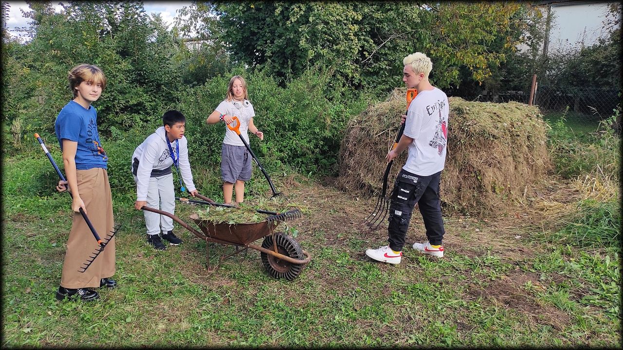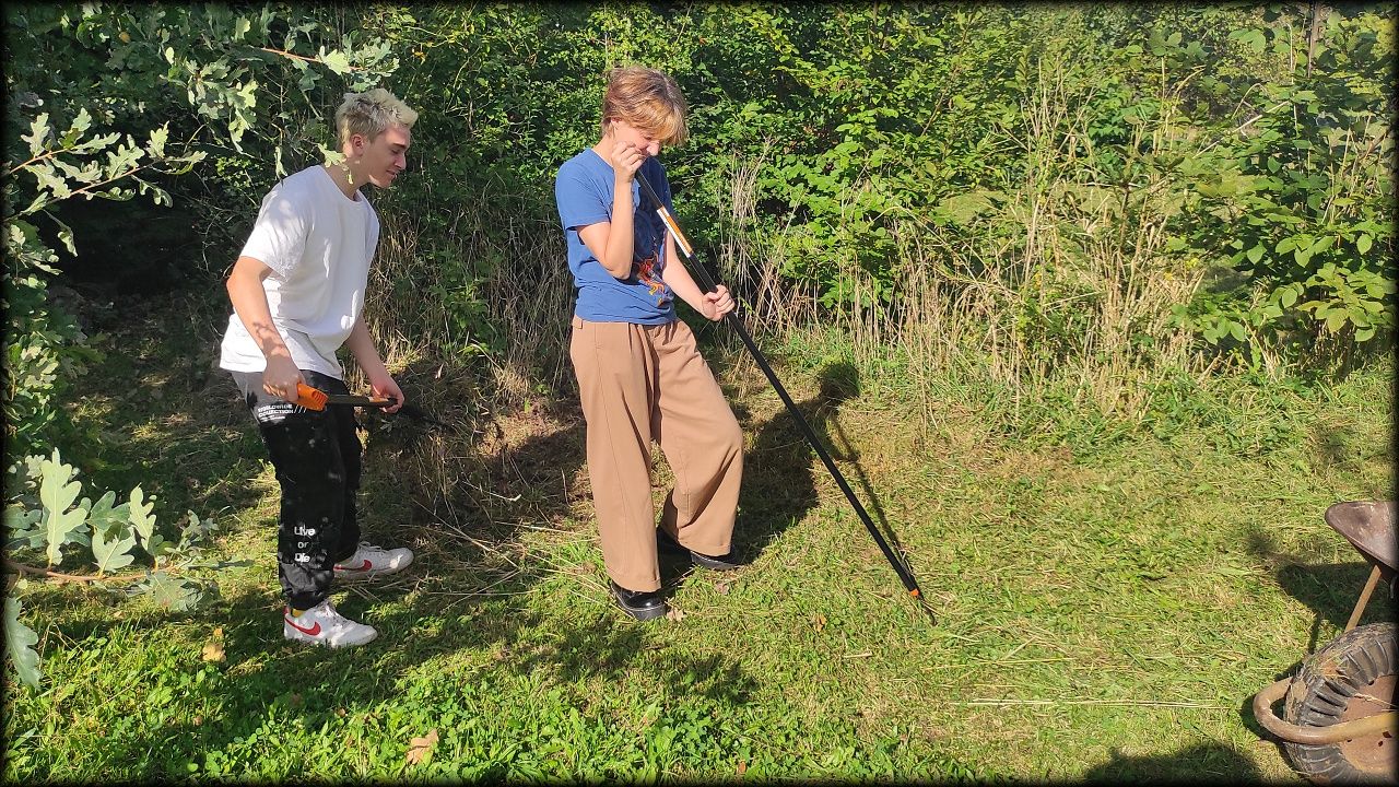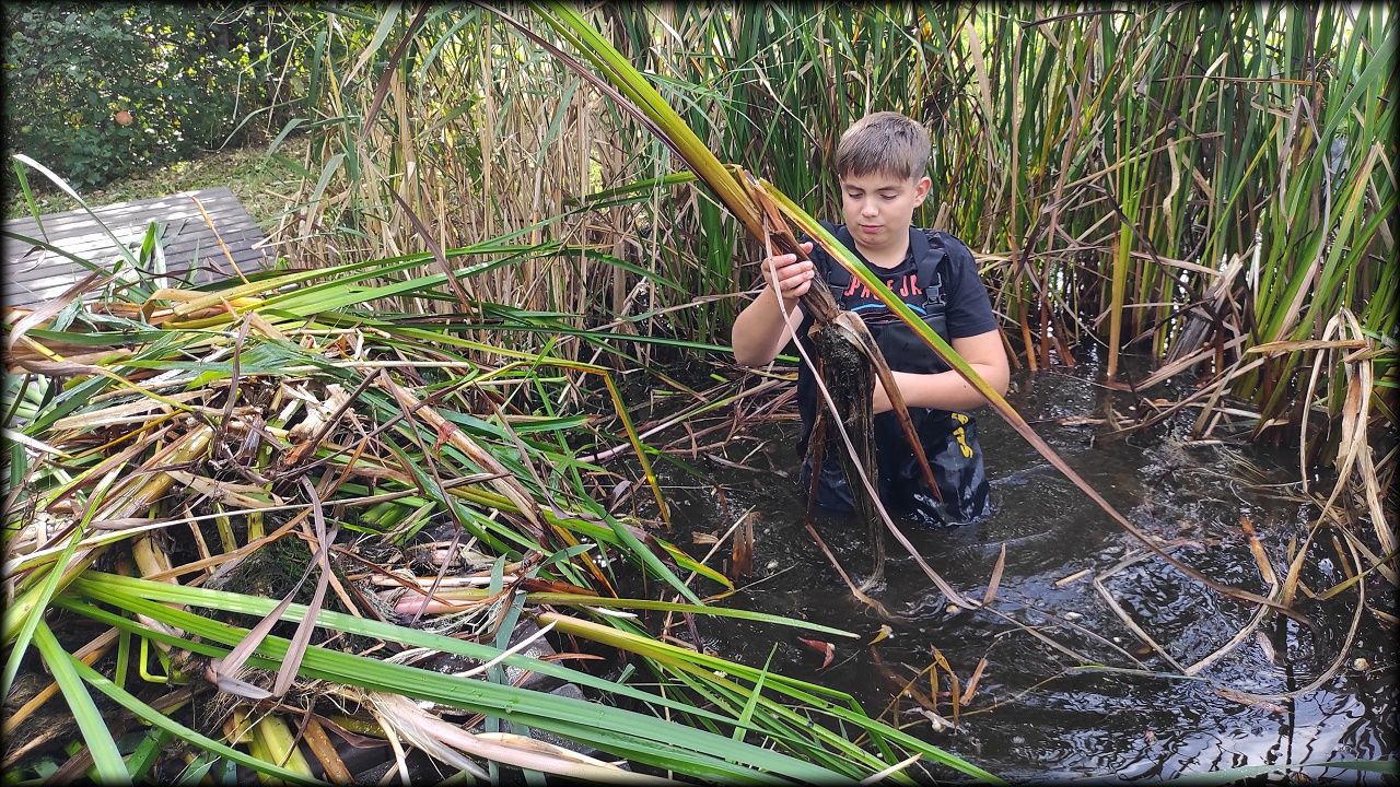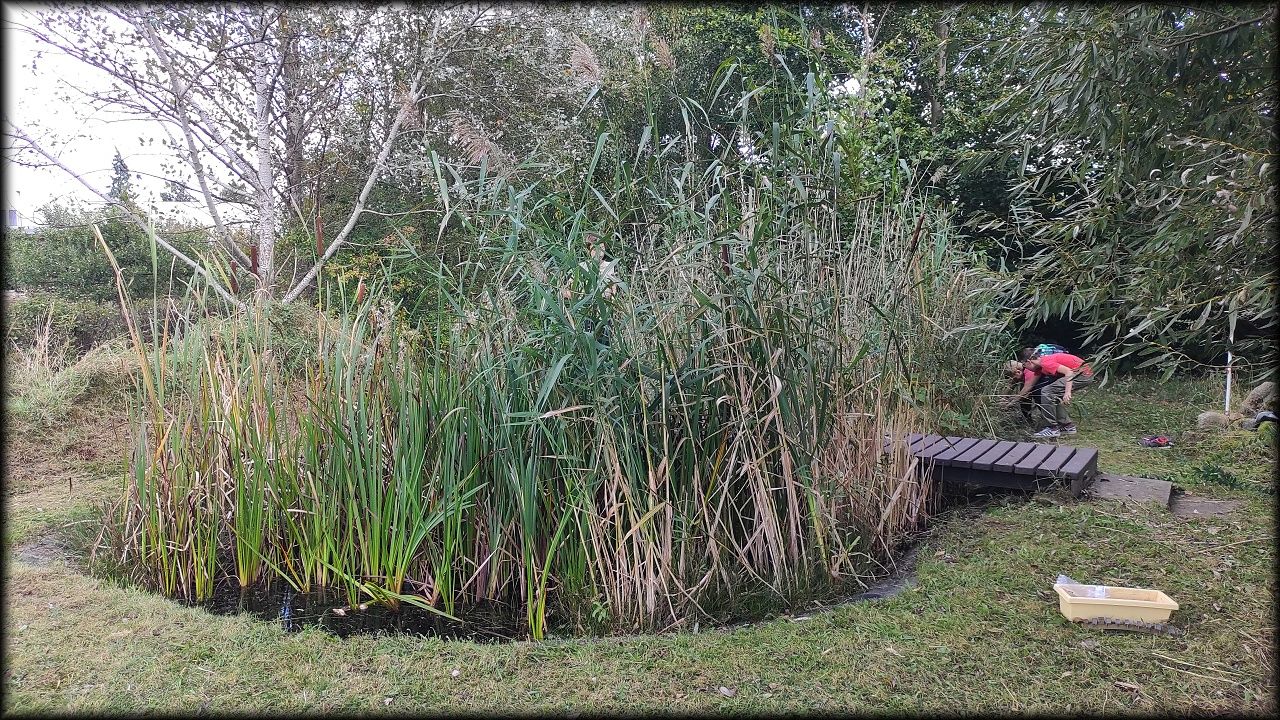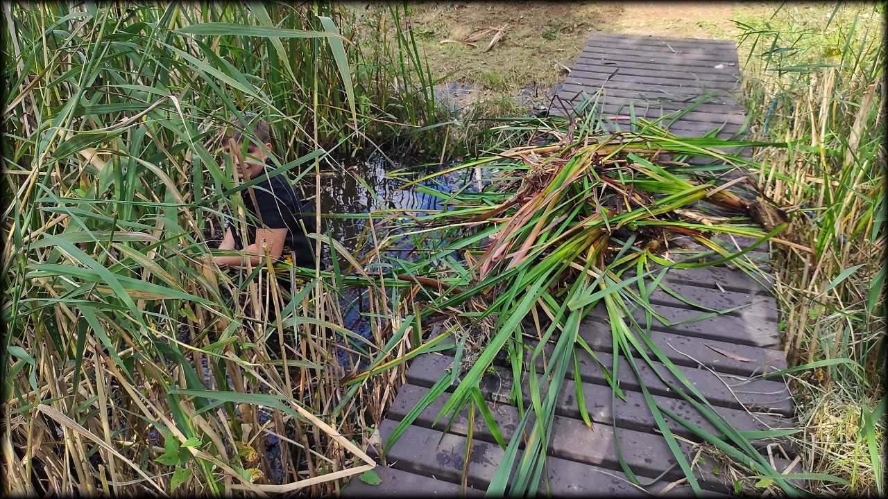 Posekali jsme a pohrabali trávu, tak to tu zase pěkně prokouklo. Navíc jsme se pustili do údržby jezírka. A šlo nám to pěkně od ruky i díky Domčovým novým broďákům. Domčo, děkujeme.
