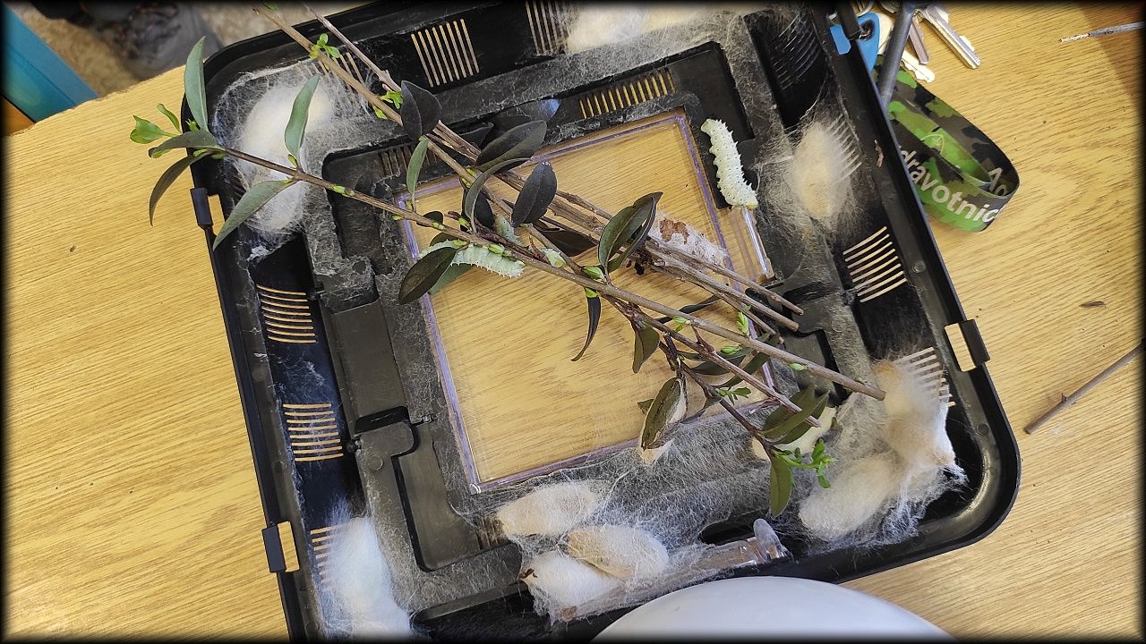 Nejdříve jsme ale obstarali zvířata a nainstalovali větev pro motýli. Však už očekáváme líhnutí prvních jedinců.