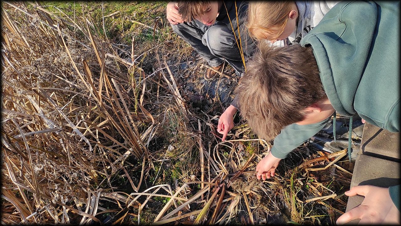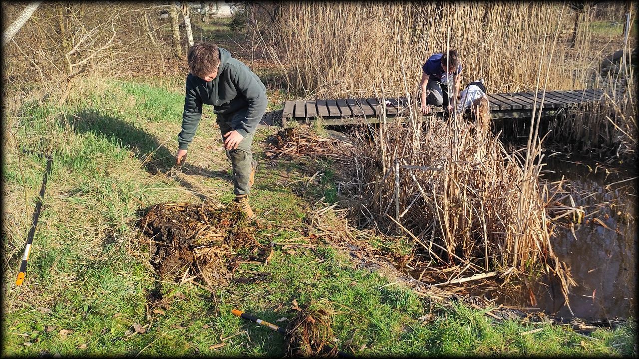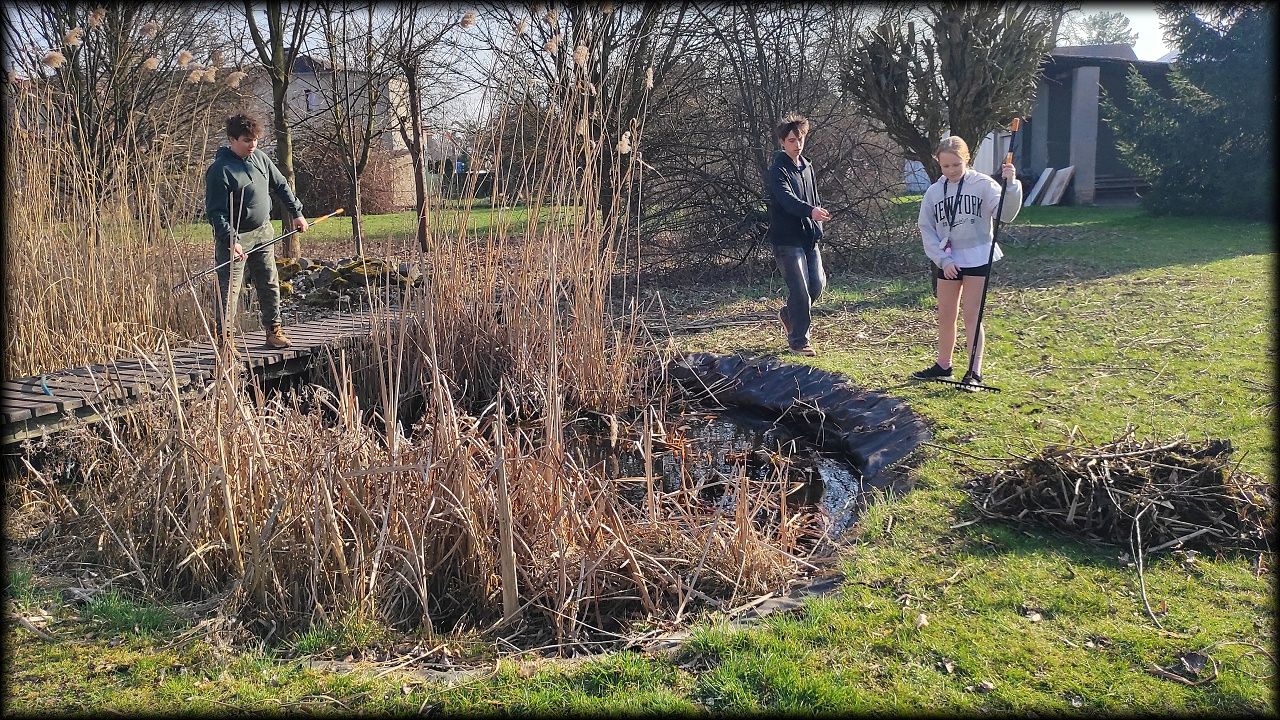 Dnes jsme se pustili hlavně do jezírka, kompostu a hromady dřeva.
