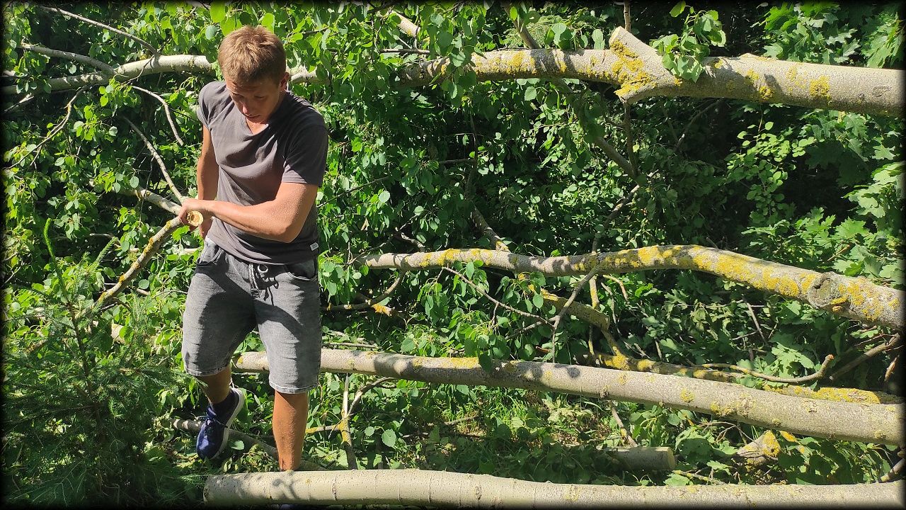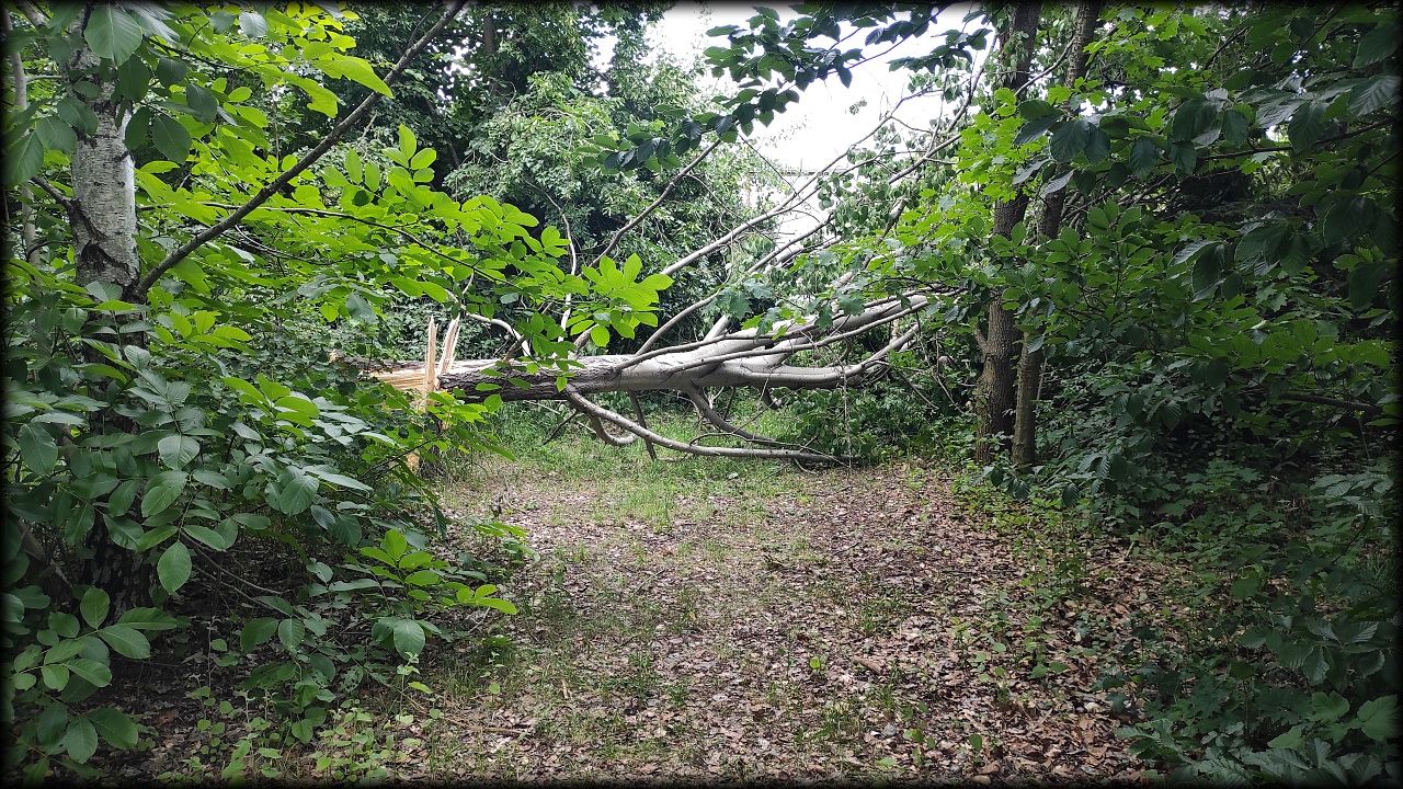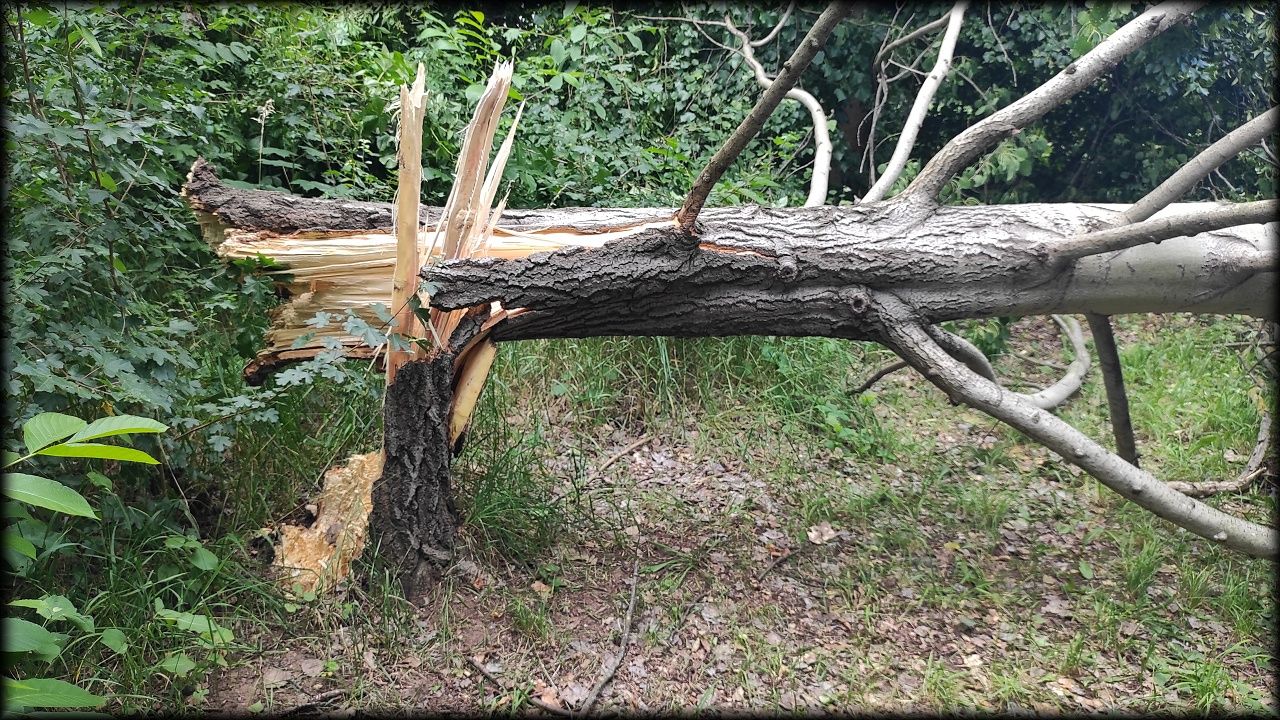 Vítr zlomil náš oblíbený strom, po kterém jsme rádi šplhali. Tím stromem byl topol osika na hraně sukcesní plochy. K jeho pádu pomohla degradace dřeva drobným chorošem v kořenovém náběhu. Škoda ho ... No, zapěstujeme si nový stromek.