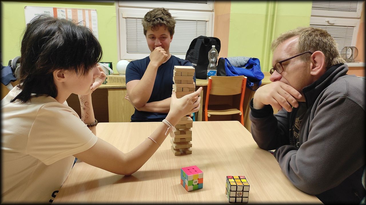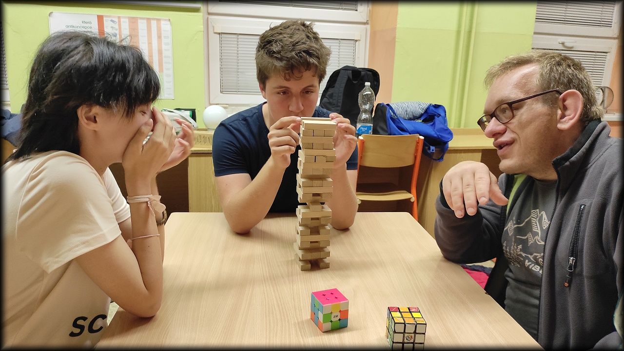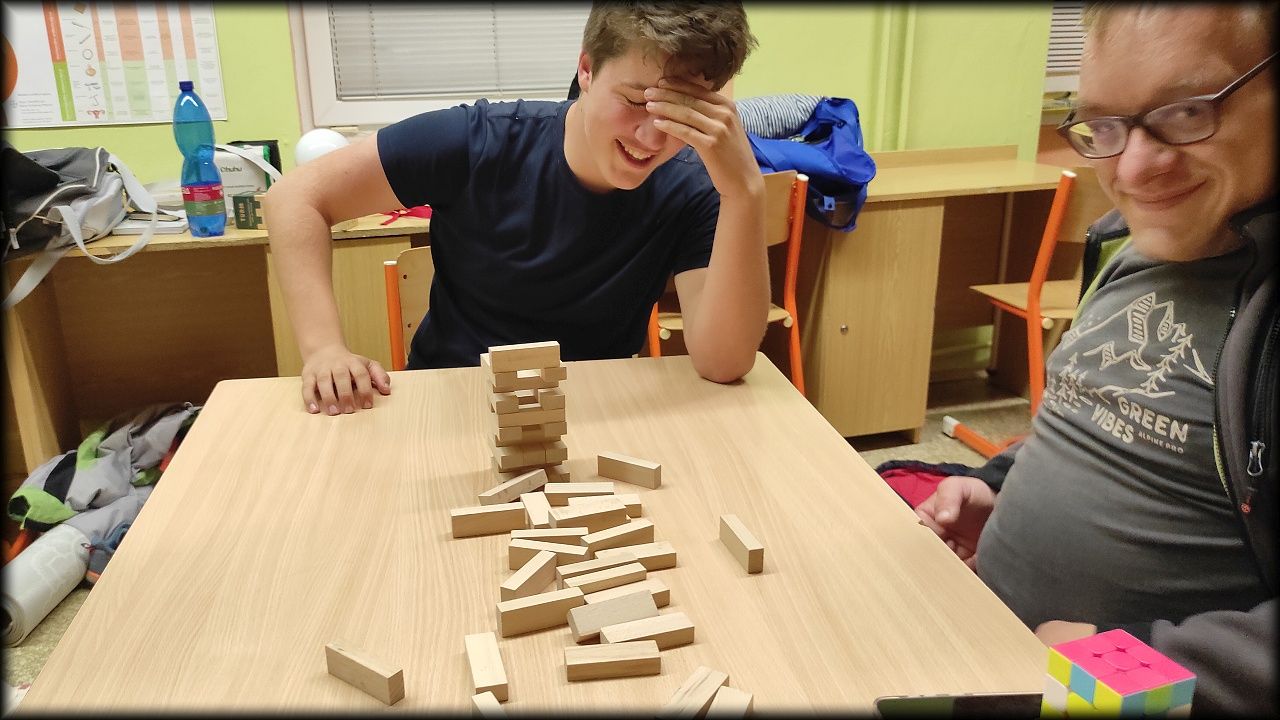 V pátek večer jsme si však před večeří stihli zahrát dvě hry, a po večeři zmizet v útrobách školy, nebo si zkusit trpělivost a jemnou motoriku.