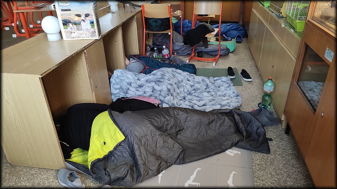 A protože to bývá dost nevyspitatelné, jsme připraveni na vše. Večer si v pohodě stíháme po delší době opéci buřty. Při nočním pozorování jezírka objevujeme i nový druh - člunici jezerní. Po návratu do školy chvíli strašíme žáky 5.B, kteří tu dnes také přespávají, a vyrazili na stezku odvahy. Pak jsme se ve škole doslova ztráceli a každou chvíli někdo někoho musel hledat! Po pohádce ...