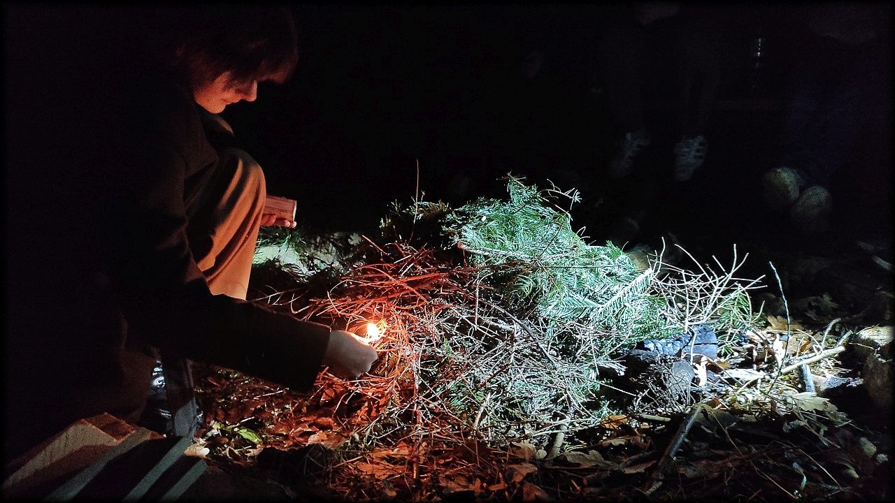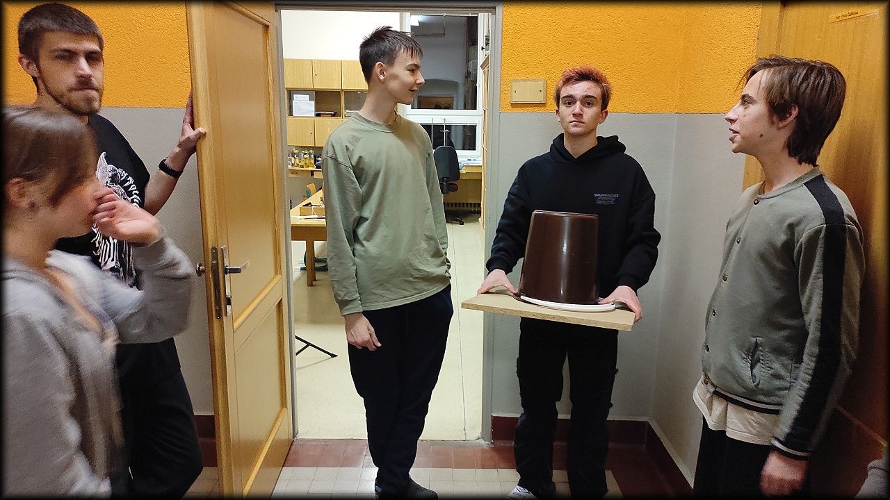 V pátek jsme ale tradičně vyrazili povečeřet k ohni na školní pozemek. Tentokrát jsme chvilku bojovali s hodně navlhlým dřevem, ale nakonec se zadařilo. Dokonce to máme zdokumentováno termokamerou.