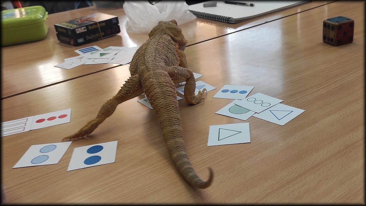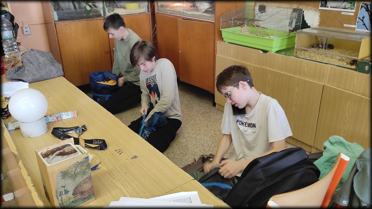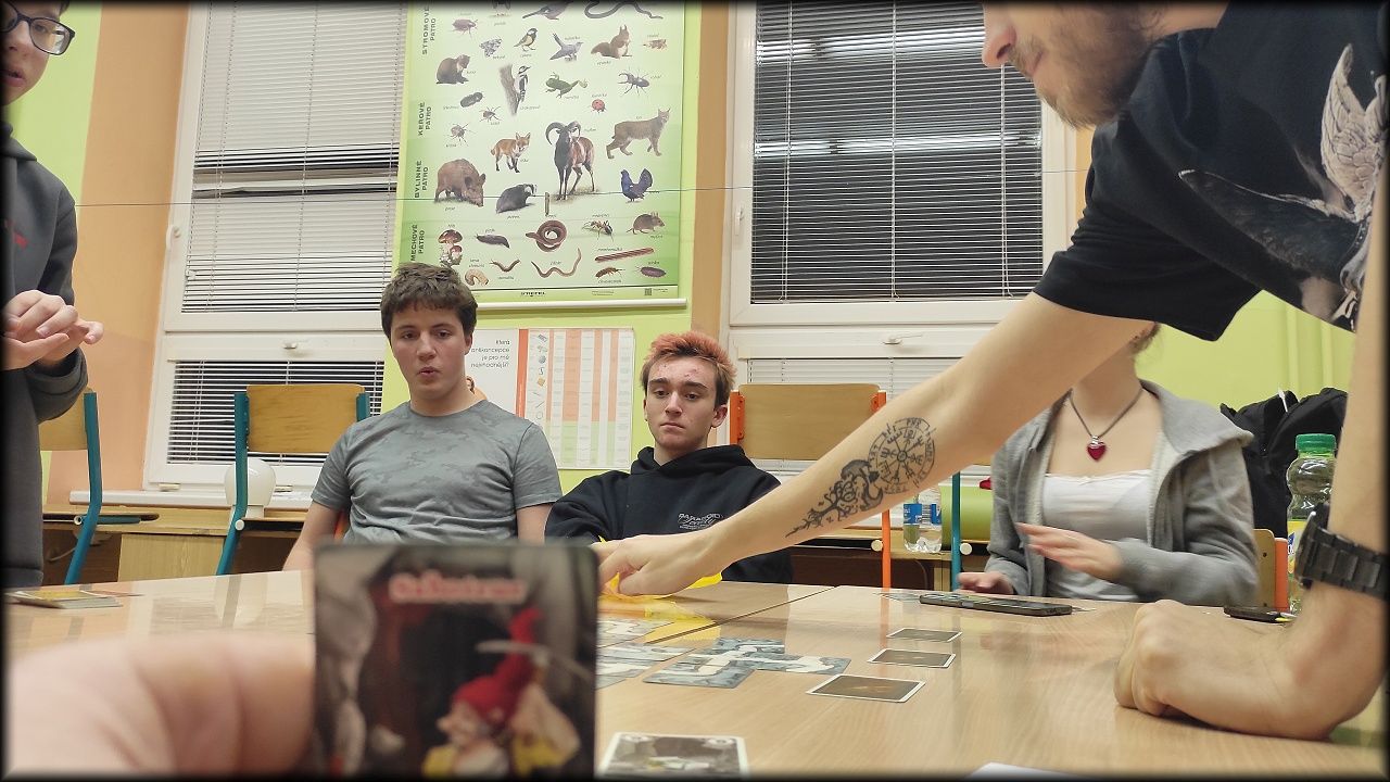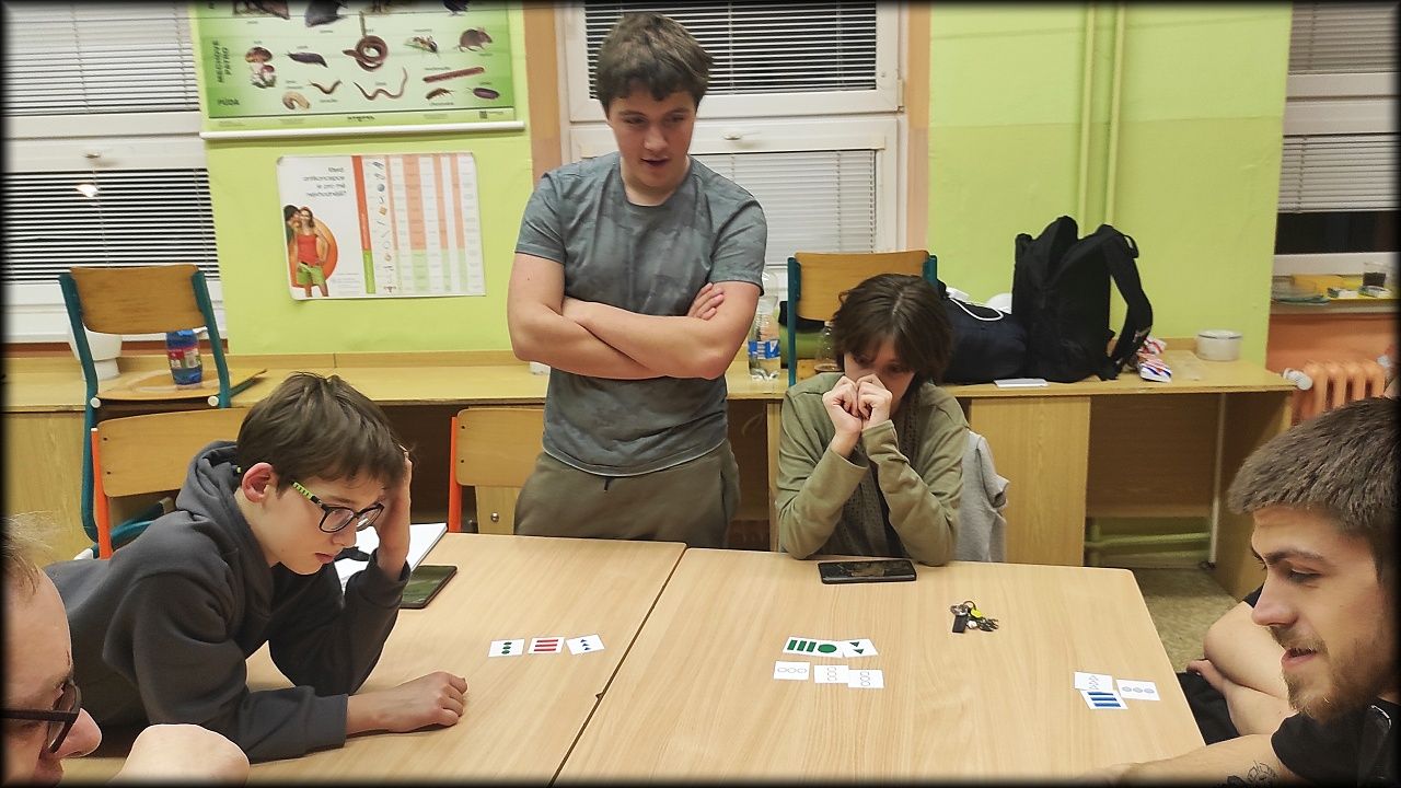 Po návratu do tepla školy jsme si zahráli strategickou hru Sabotér a před spaním jsme místo pohádky ještě chvíli hráli postřehovku Set. V hraní těchto her jsme pokračovali i v sobotu dopoledne. Kluci navíc roztřídili kartičky k poznávačce na školní a okresní kolo. Zjistili, že nám pár organismů ještě chybí, tak možná věnujeme některou ze zimních schůzek výrobě kartiček.