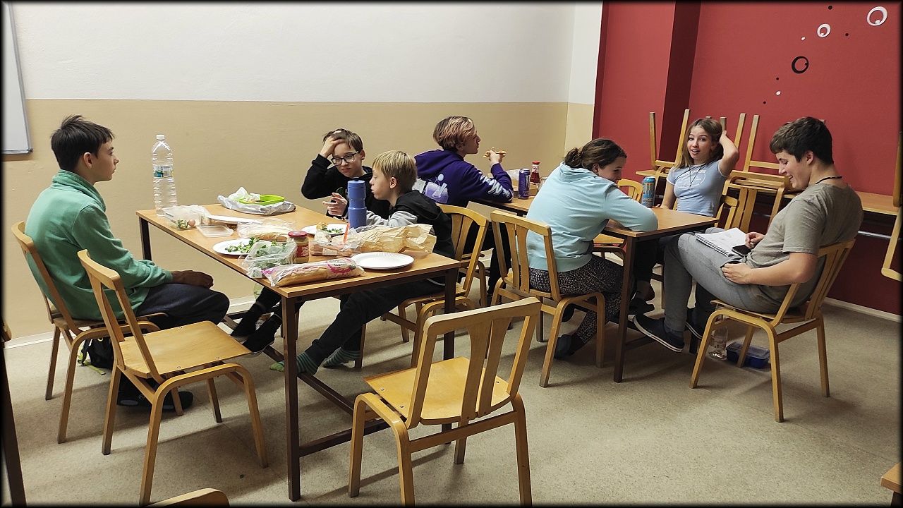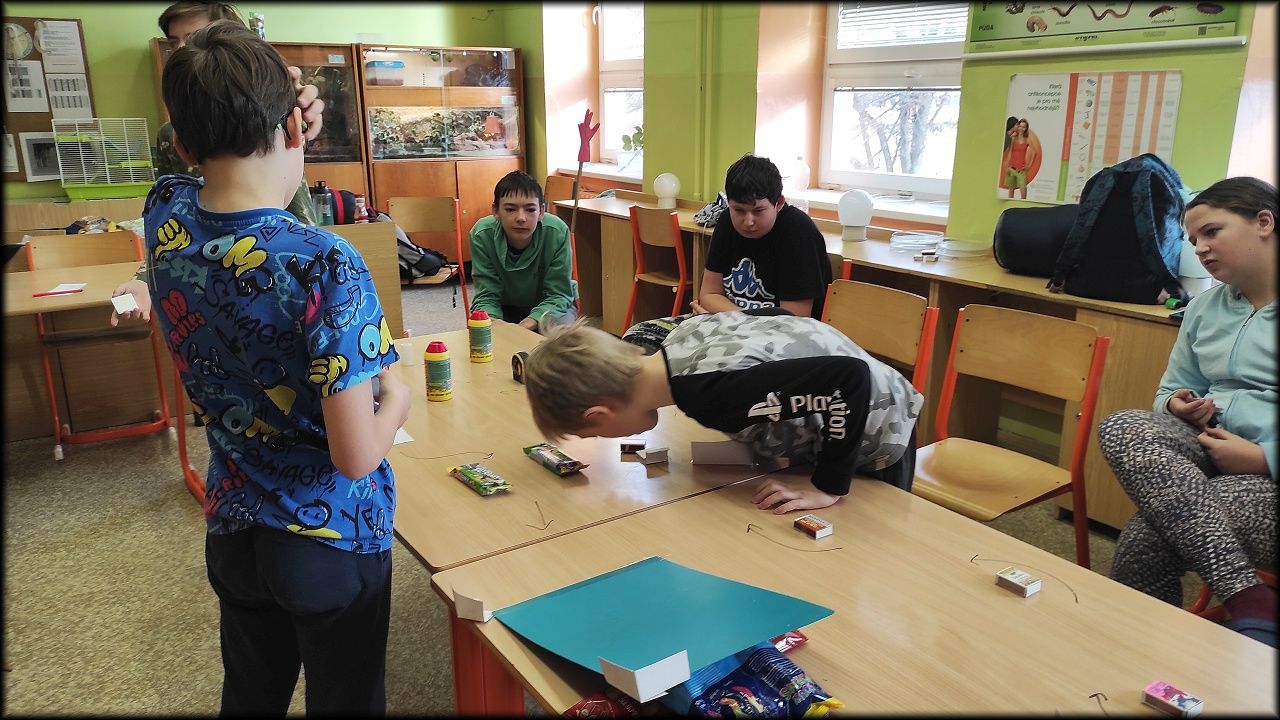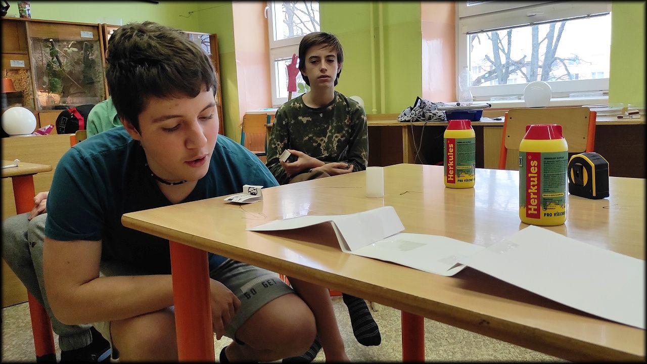 Vzhledem k deštivému počasí jsme večeři raději připravili v suchu školní kuchyňky. A pak už jsme se pustili do uhlíkové i ekologické stopy, a hlavně do výroby téměř 100% ekologického vozítka. (Jen se musely pokácet stromy, vyrobit papír, ...)