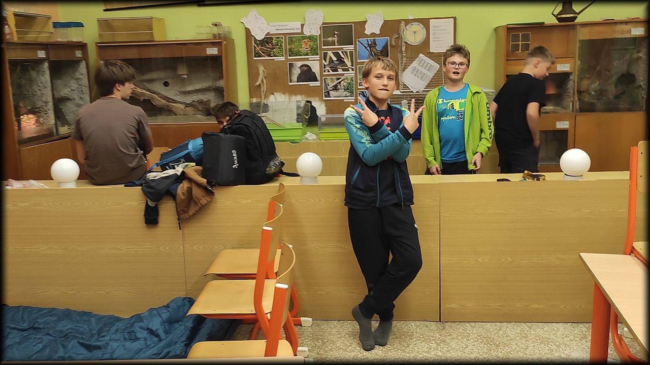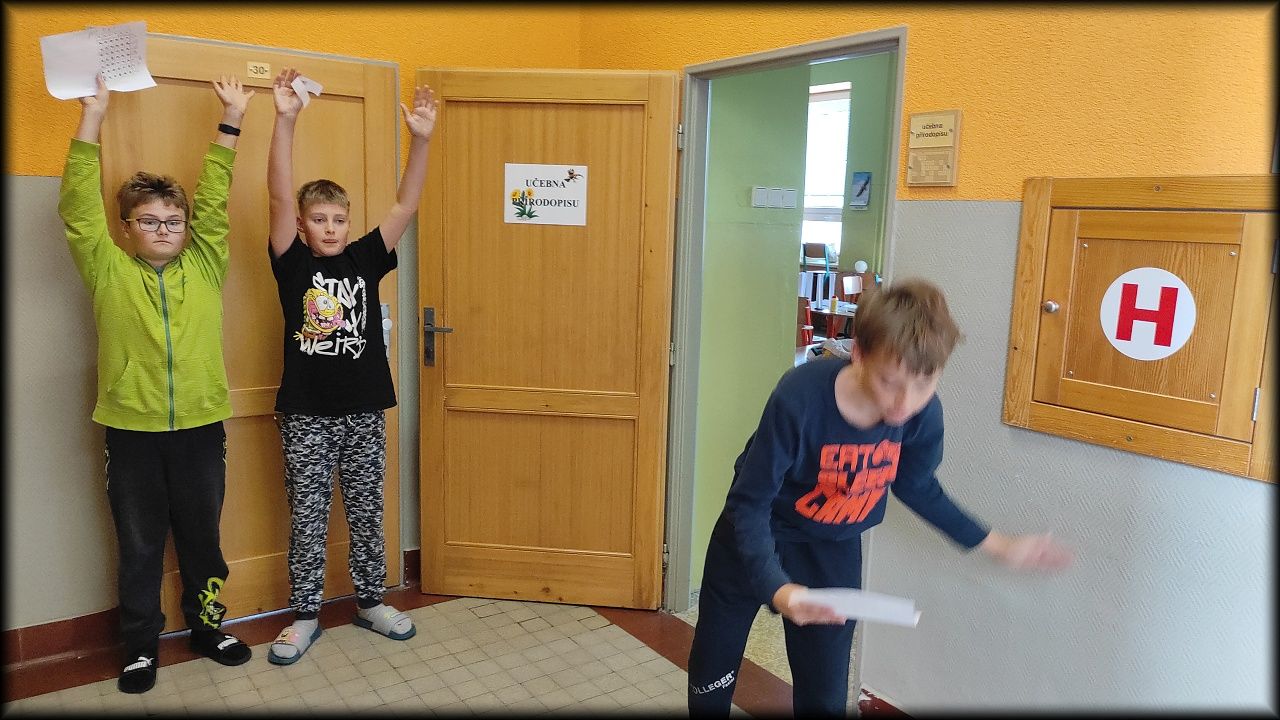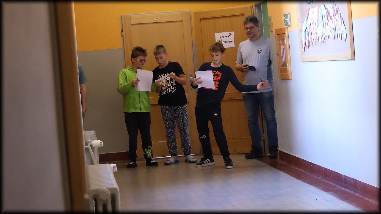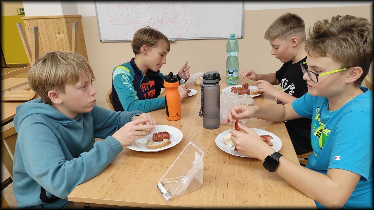 Ale postupně. Nejprve jsme povečeřeli v suchu ve školní kuchyňce. Pak jsme navštívili tajemnou chodbu. Říkejme ji třeba Chodba nářků. A následně jsme si šli, každý sám, projít kus školy při stezce odvahy. A Albert opět nezklamal. Čekal na nás u cíle. Všichni jsme svůj strach zvládli se ctí!