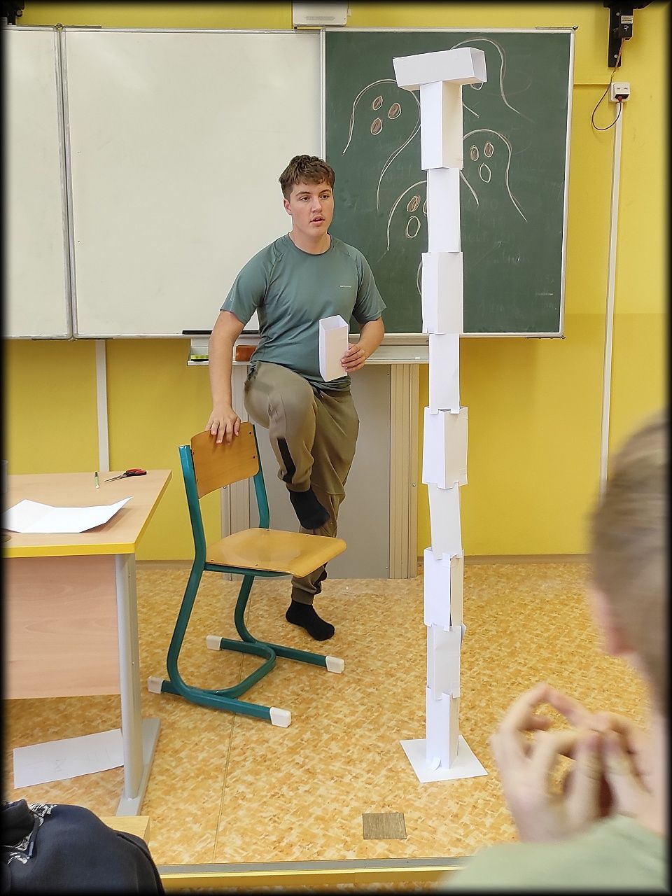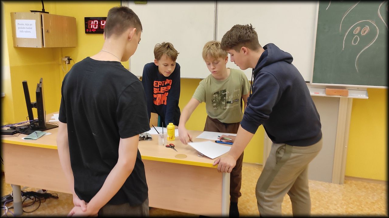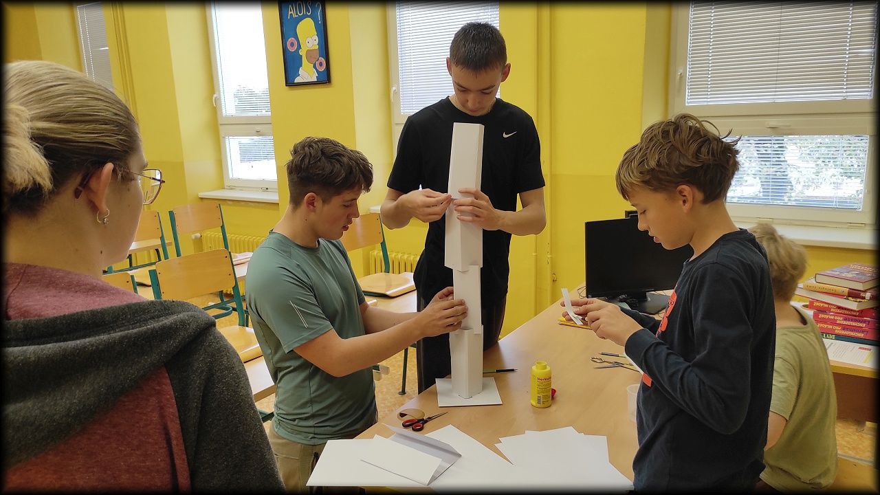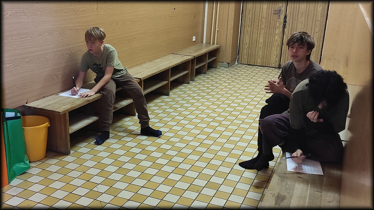 V sobotu se počasí neumoudřilo, tak jsme, uvnitř budovy, vystoupali do velehor a splnili tam pár úkolů. Z postaveného vysílače se nám dokonce podařilo odvysílat šifrovanou zprávu.
