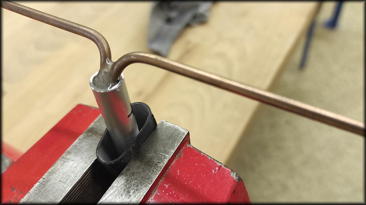 Vlepili jsme mosazný šroub do konce delší trubičky. Kratší trubičku jsme opatřili připraveným rámečkem. Máme tak vše připravené na natírání!
